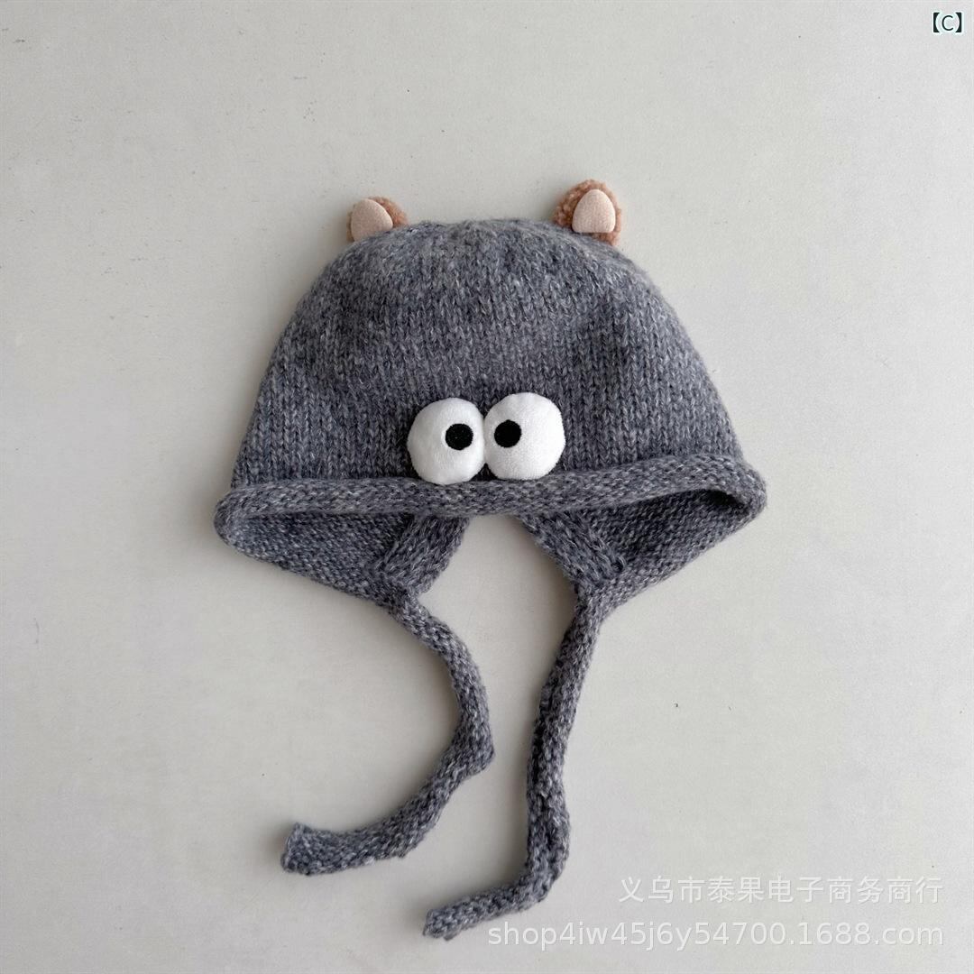 ニット帽 キッズ ベビー カートゥーン かわいい 防寒 あったか 毛糸 チクチクしない 1歳 2歳 3歳 4歳 ベージュ グレー コーヒー色 秋冬