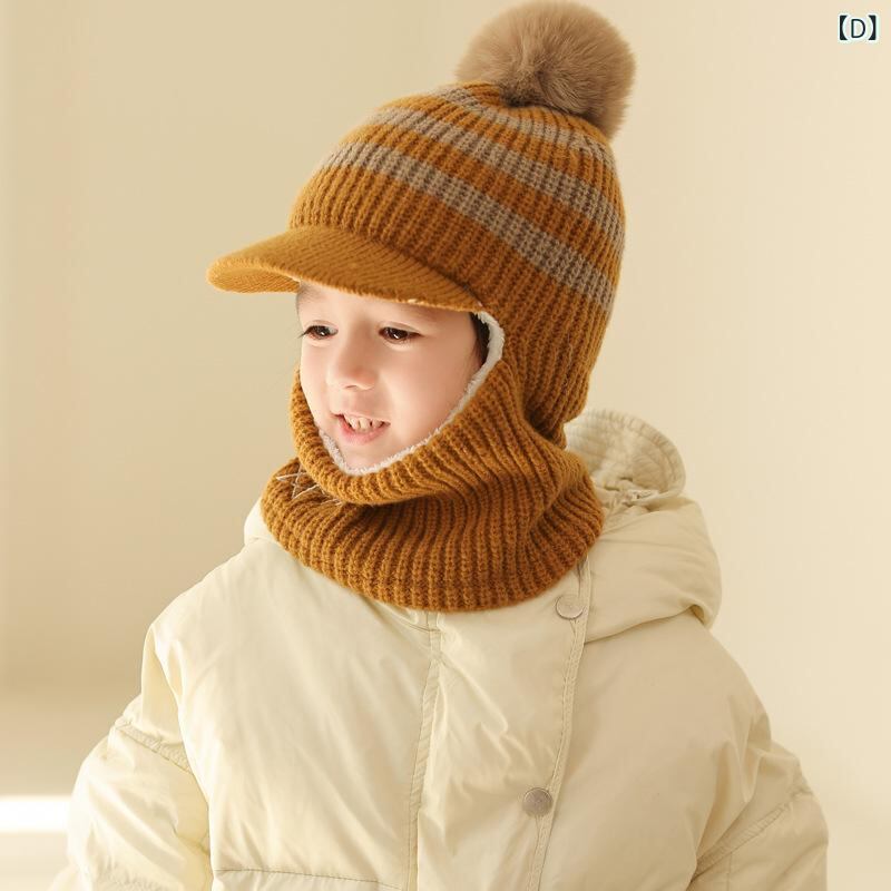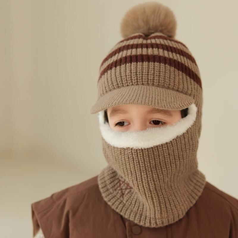 帽子 キッズ 子供用 ニット帽 マフラー 一体型 防寒 防風 暖かい 裏起毛 4歳 5歳 6歳 秋冬 ベージュ グレー ブラック