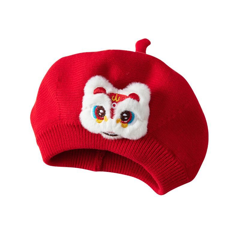 帽子 ベビー 秋冬 国風 喜ばしい 赤い 毛糸 帽子 冬 幼児 女の子 ベレー帽 新生児 あったか コットン 保温 3ヶ月 6ヶ月 12ヶ月 1歳