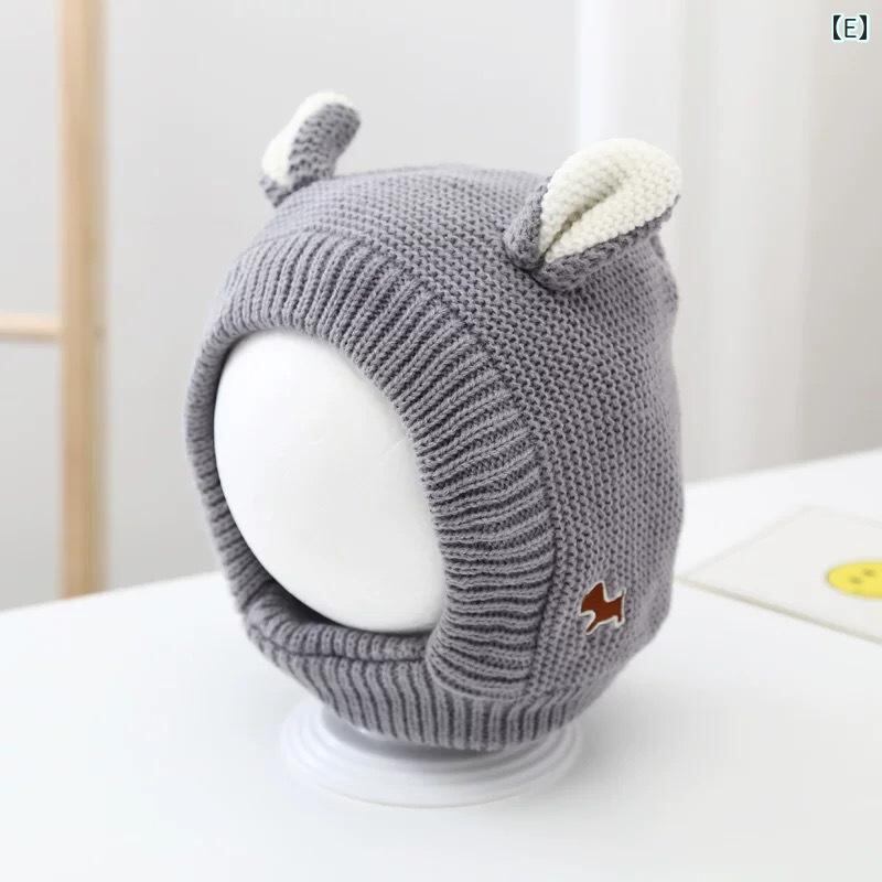 ニット帽 キッズ ベビー うさぎ耳付き 防寒帽子 幼児 男の子 女の子 かわいい 保温 秋冬 鹿毛绒 裏起毛 ベージュ ブラック ピンク レッド グレー