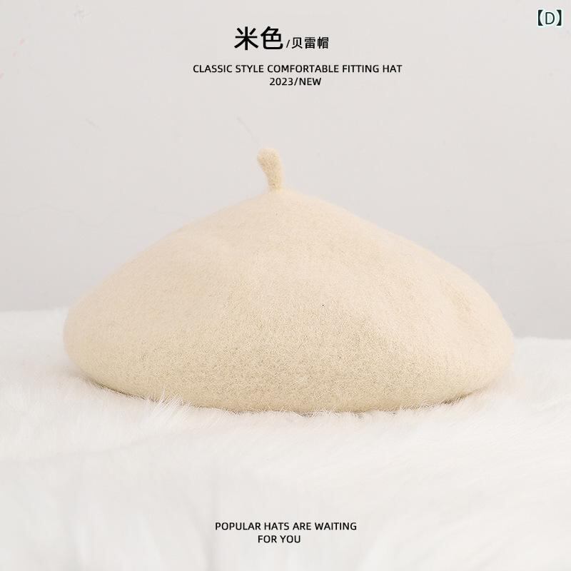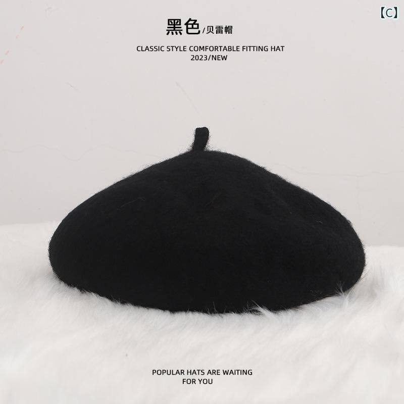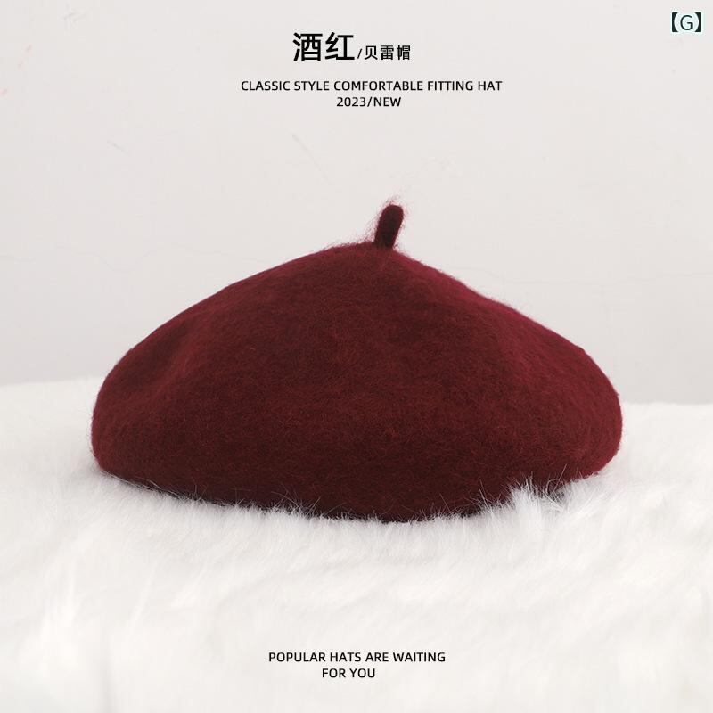 帽子 キッズ ベレー帽 秋冬 女の子 ウール 毛糸 親子 無地 調整可能 かわいい 赤 ベージュ