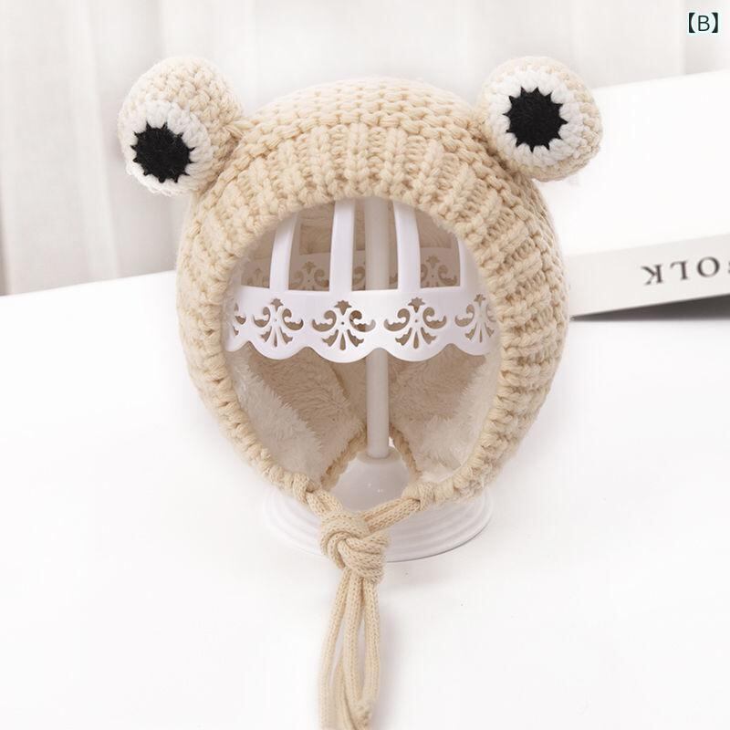 ベビー キッズ ニット帽 秋冬 防寒 保温 カエルモチーフ ウール混 紐付き かわいい 伸縮性 チクチクしない グリーン レッド ベージュ イエロー