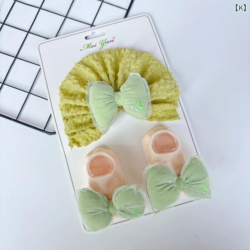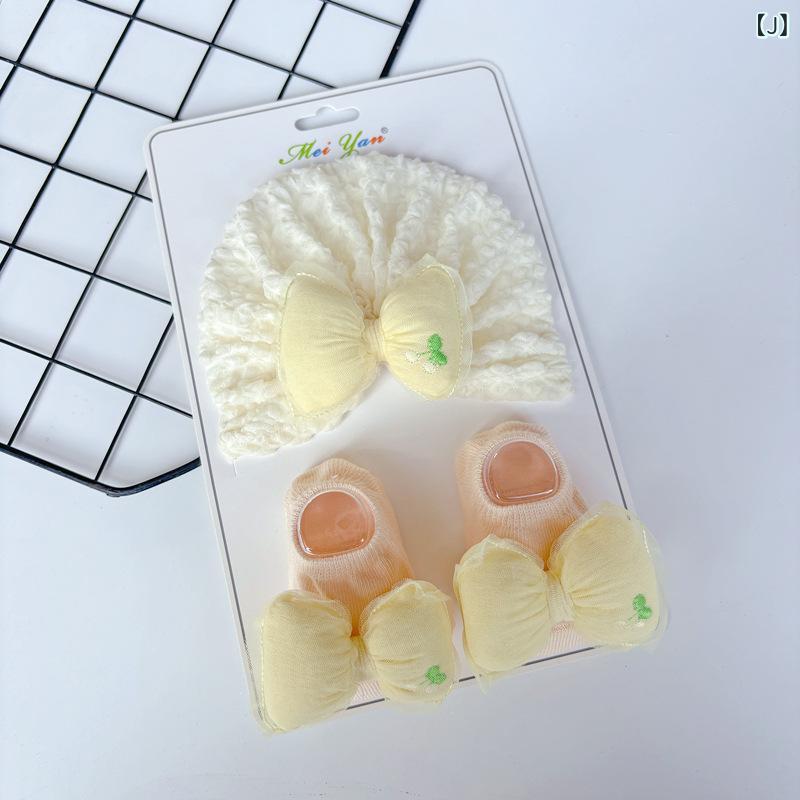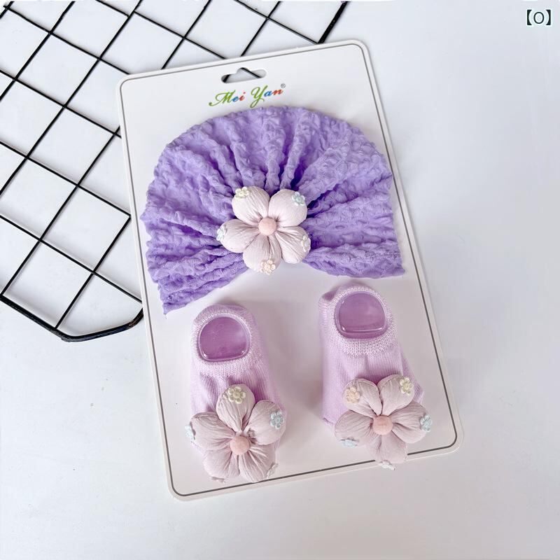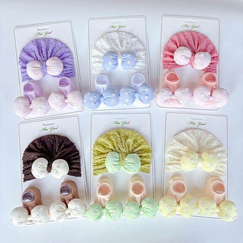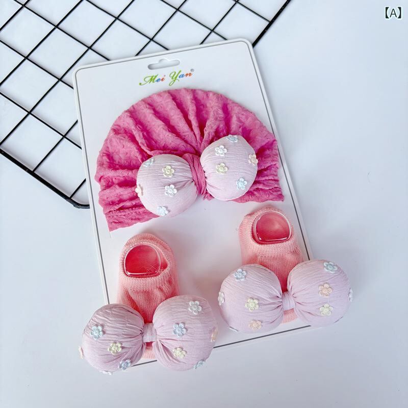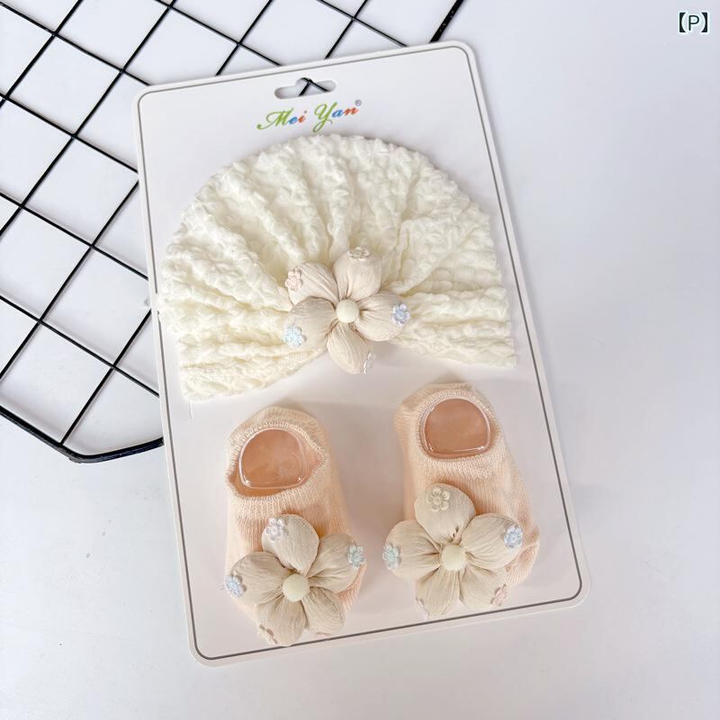 ベビー 帽子 スタイ ソックス セット 新生児 赤ちゃん ニット帽 手編み風 花柄 紫外線対策 日よけ 0歳 6ヶ月 12ヶ月 春夏 秋冬