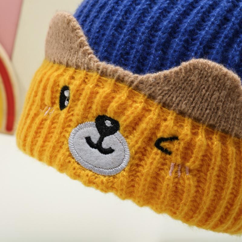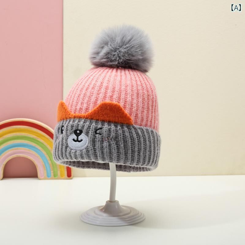 ニット帽 ベビー キッズ 冬用 かわいい 小熊 ボア付き 防寒 帽子 子供 赤ちゃん 耳当て付き 伸縮性 ベージュ ピンク系 イエロー ブルー