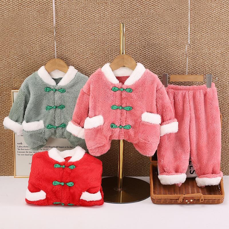 子供用パジャマ 秋冬 キッズ フランネル Vネック 厚手 ルームウェア 上下セット 80 90 100 110 120 あったか 部屋着 かわいい 1歳 2歳 3歳 ポリエステル