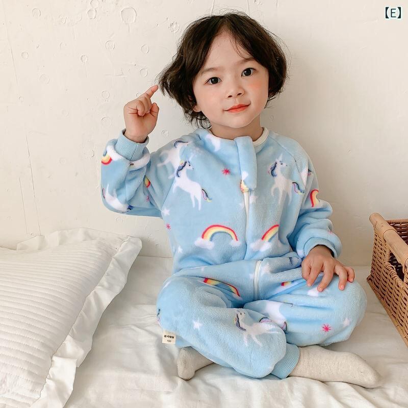 子供服 秋冬 ベビー パジャマ フランネル 赤ちゃん 寝袋 珊瑚フリース 厚手 ホームウェア 女児 B類 灯芯絨 新生児 0歳 1歳 かわいい 70 80 90 100 110 120 グレー ピンク 馬 クマ