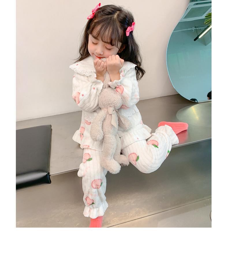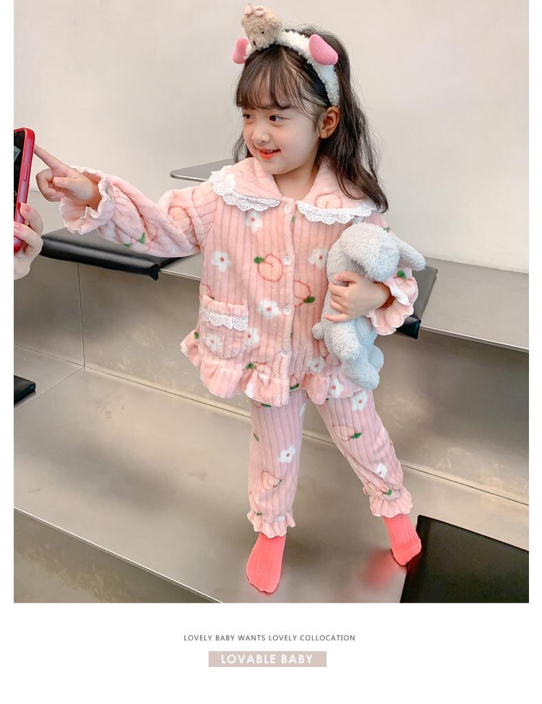 子供用パジャマ 女児ルームウェア 厚手フランネル 上下セット 秋冬 春秋 部屋着 寝巻き 吸湿速乾 100 110 120 130 140 150 ピンク系 ホワイト