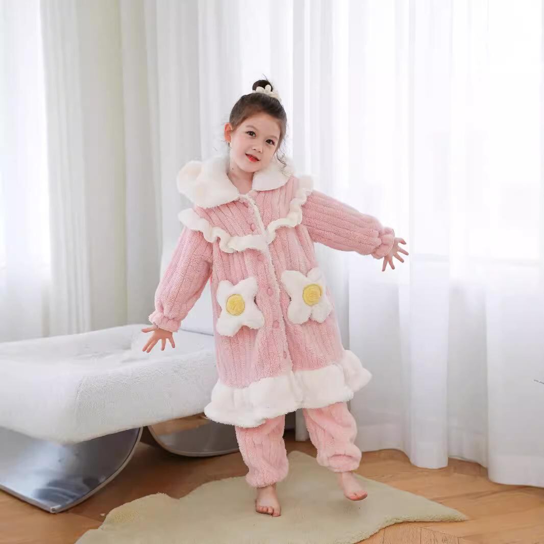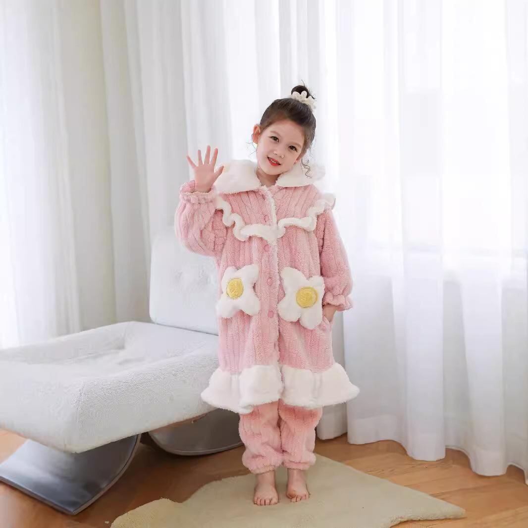 子供用 寝間着 女の子 プリンセス パジャマ 厚手 フランネル 珊瑚絨 ルームウェア 親子ペア 花柄 110 120 130 140 150 160 170 冬