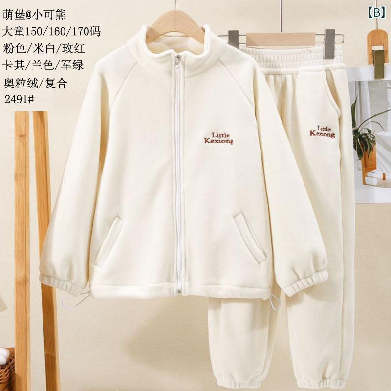 子供用ルームウェア 女の子 中大童 パジャマ 上下セット 厚手 フリース 保温性 暖かい 秋冬 ピンク 米白 カーキ ブルー 150 160 170
