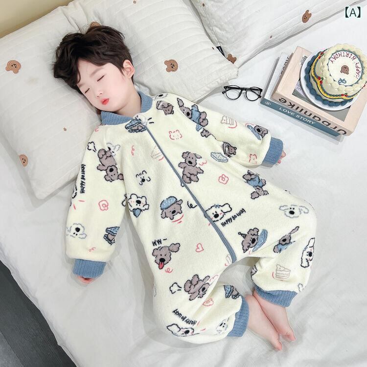 子供用 パジャマ ベビー服 カバーオール フランネル 厚手 寝袋 男の子 女の子 部屋着 あったか かわいい ベージュ 犬柄 ブラウン ハート柄 ブルー ベア柄 80cm 90cm 100cm 110cm 120cm 130cm