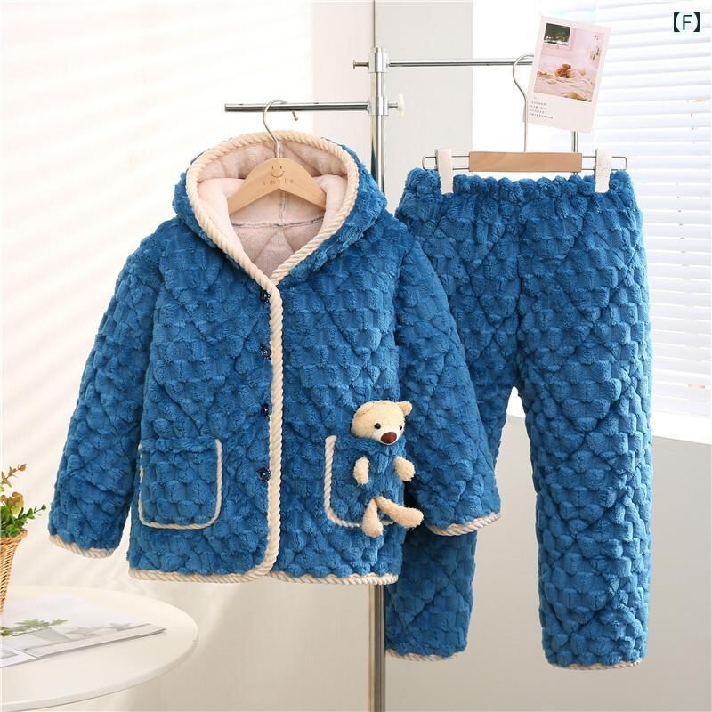子供用パジャマ 冬用 三層構造 中綿入り 裏起毛 厚手 サンゴフリース フランネル 中 बड़ा 子供用 男の子 女の子 ホームウェア 部屋着 暖か 防寒 100cm 110cm 120cm 130cm 140cm 150cm 155cm 160cm 1