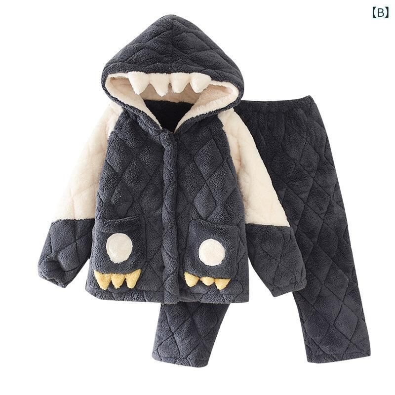 子供用パジャマ 男児向けフランネル 秋冬 厚手 三層 珊瑚フリース 大童 ホームウェア 上下セット 暖か かわいい 部屋着 寝間着