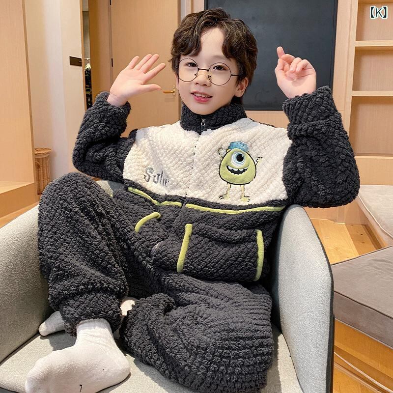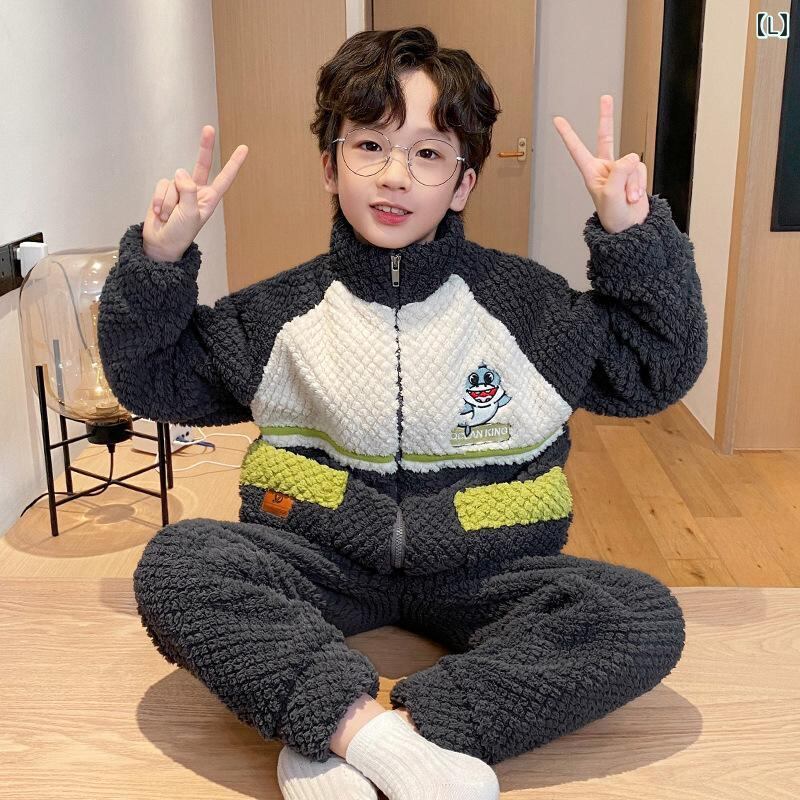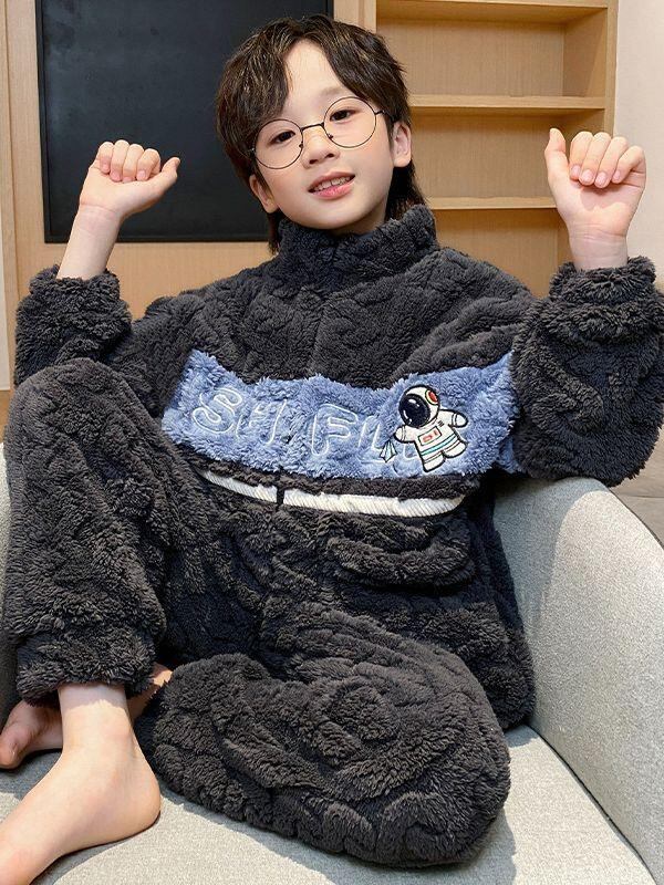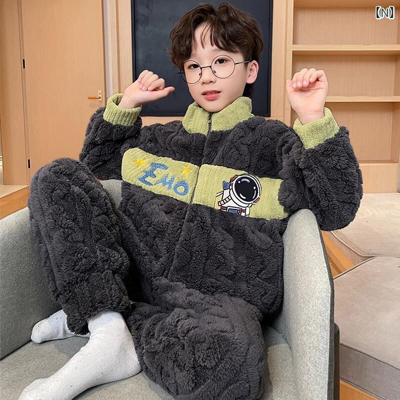 子供用パジャマ 男の子 秋冬 珊瑚フリース ジップアップ ホームウェア 厚手 防寒 フランネル 中 крупный детские