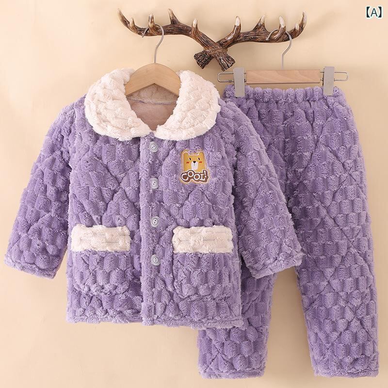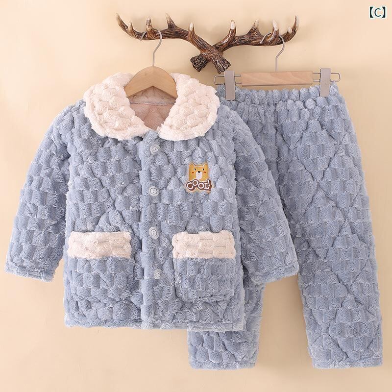 子供用パジャマ 秋冬 キッズ 男の子 三層 あったか フランネル サンゴフリース 厚手 ルームウェア 無地 かわいい 80cm 90cm 100cm 110cm 120cm 130cm 140cm 150cm ポリエステル
