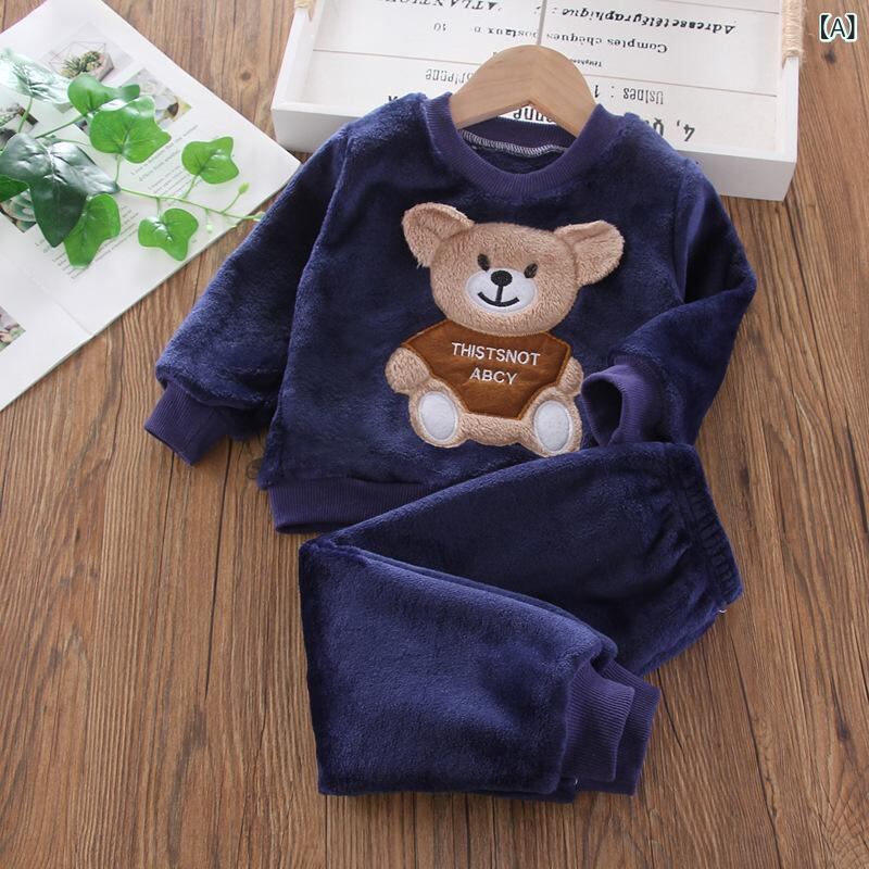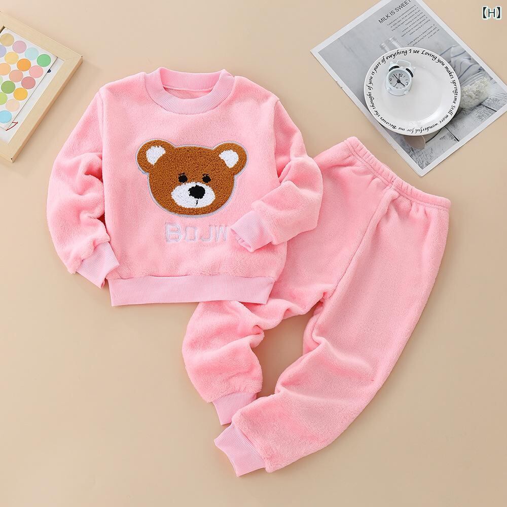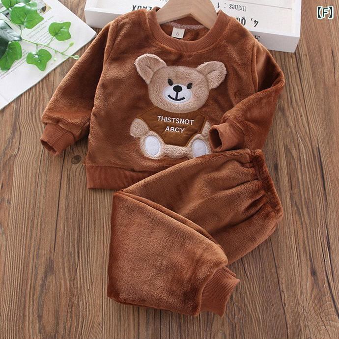 子供用パジャマ 秋冬 フランネル 珊瑚絨 セットアップ クマ柄 厚手 暖かい 部屋着 ベビー 男の子 女の子 幼児 かわいい アニマル柄 1歳 2歳 3歳