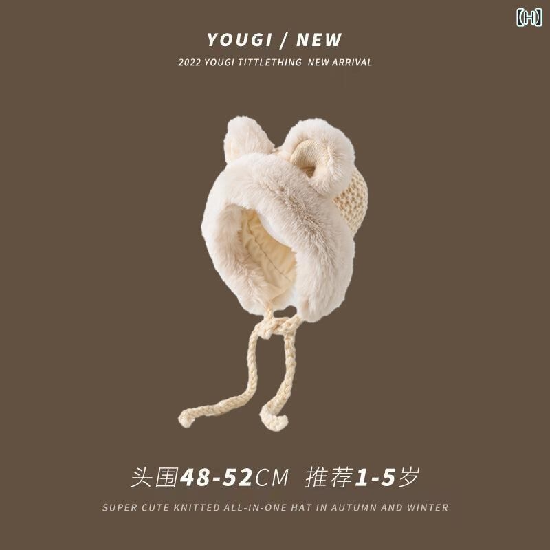 ニット帽 キッズ 秋冬 かわいい ベビー 毛糸 帽子 ファッション 男の子 女の子 暖かい 防風 ドット柄 クマ耳付き 1歳 2歳 3歳 4歳 5歳