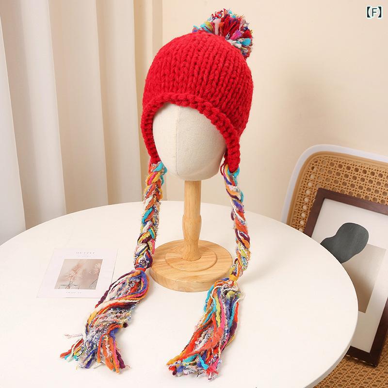 ニット帽 キッズ 女の子 防寒 帽子 手編み風 虹色 ブレード ケーブル編み かわいい 秋冬 ベージュ ホワイト ピンク カキー コーヒー レッド 3歳 4歳 5歳 6歳 7歳 8歳 9歳 10歳 11歳