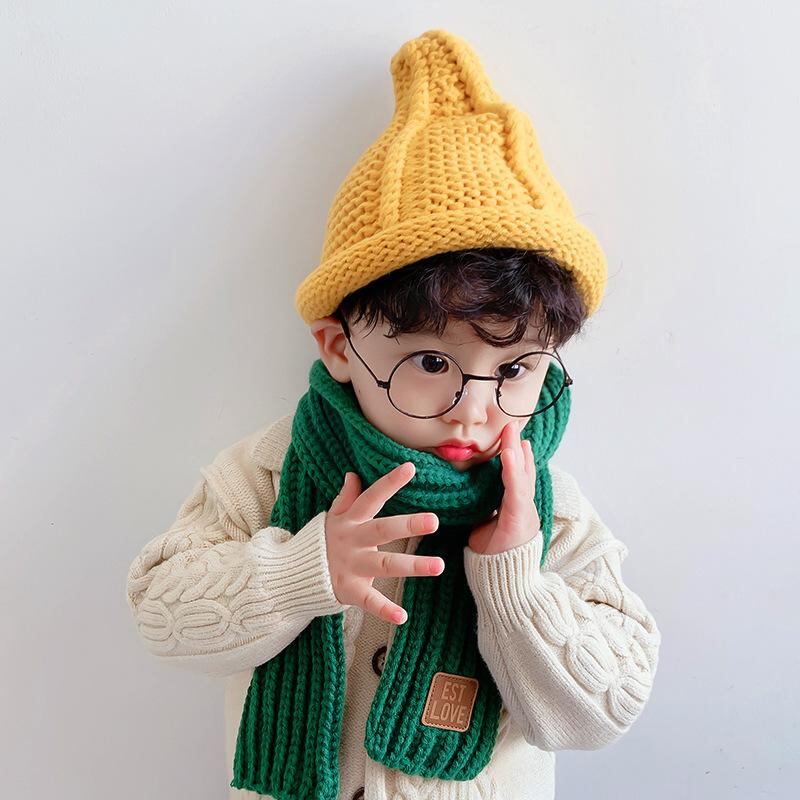 帽子 子供 ニット帽 ベビー 赤ちゃん 男女兼用 秋冬 2点セット 防寒 保温 耳あて付き マフラー グレー ブラック ネイビー ベージュ レッド イエロー コーヒー色