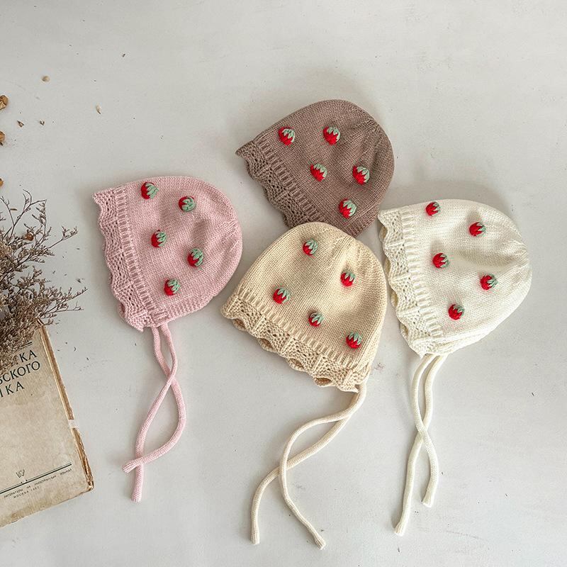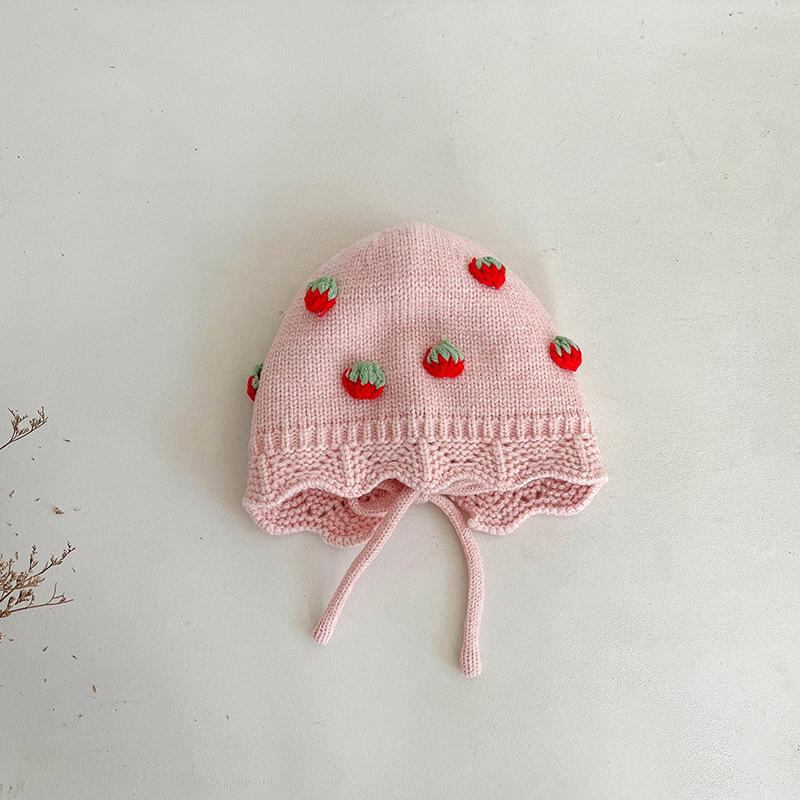 帽子 ベビー 秋冬 子供 女の子 毛糸 かわいい イチゴ レース 防寒 暖かい 春秋