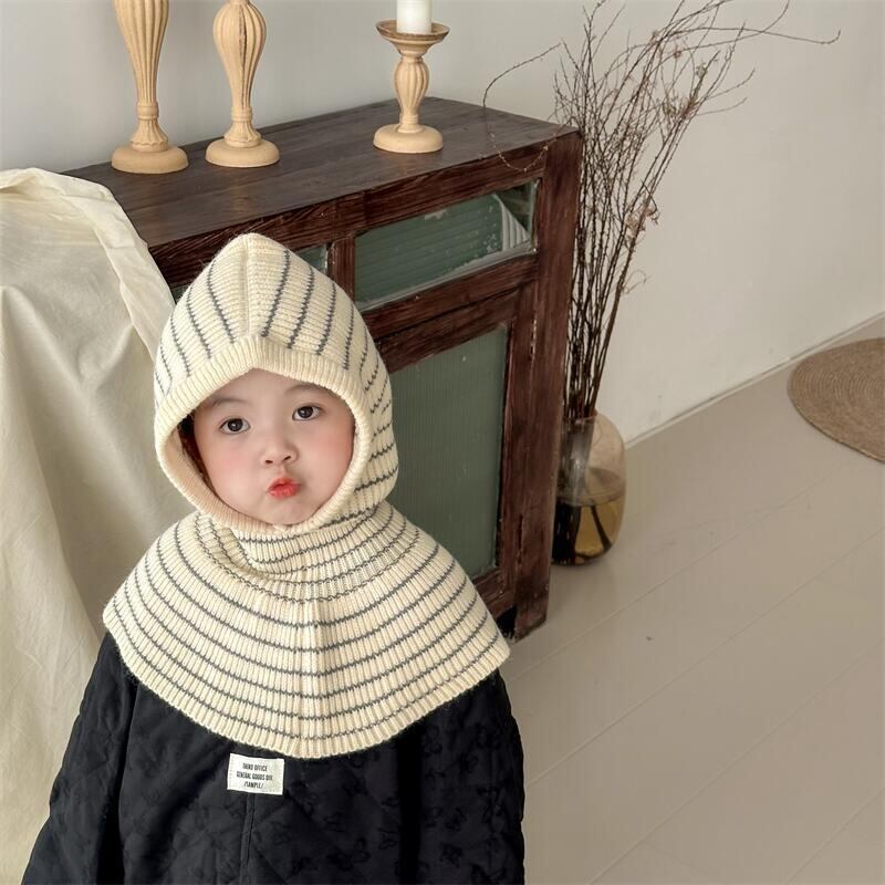 帽子 キッズ 秋冬 ニット帽子 ネックウォーマー 一体型 ベビー 防寒 あったか ニット帽 赤 ベージュ ブラック カーキ ブラウン 綿