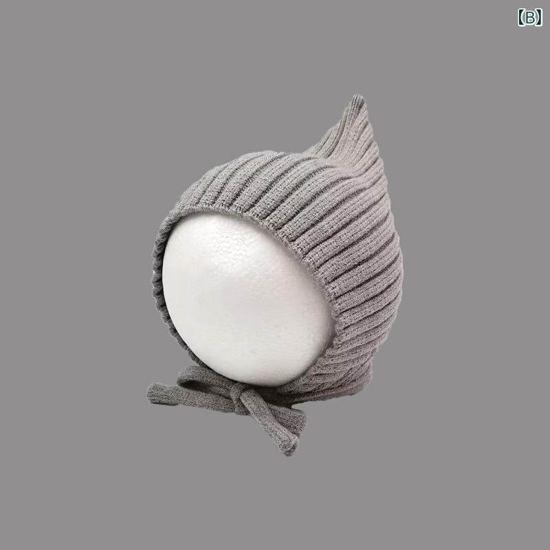 ニット帽 キッズ ベビー 秋冬 防寒 保温 6ヶ月 1歳 2歳 かわいい 赤ちゃん 帽子 小鹿柄 グレー ベージュ ワインレッド キャラメル色 43-48cm