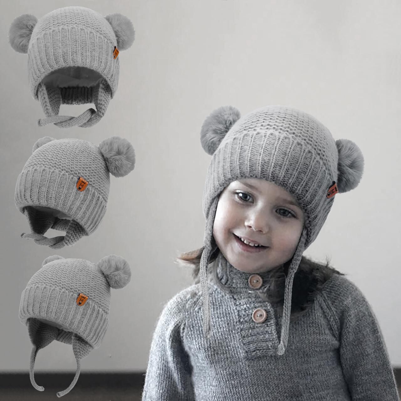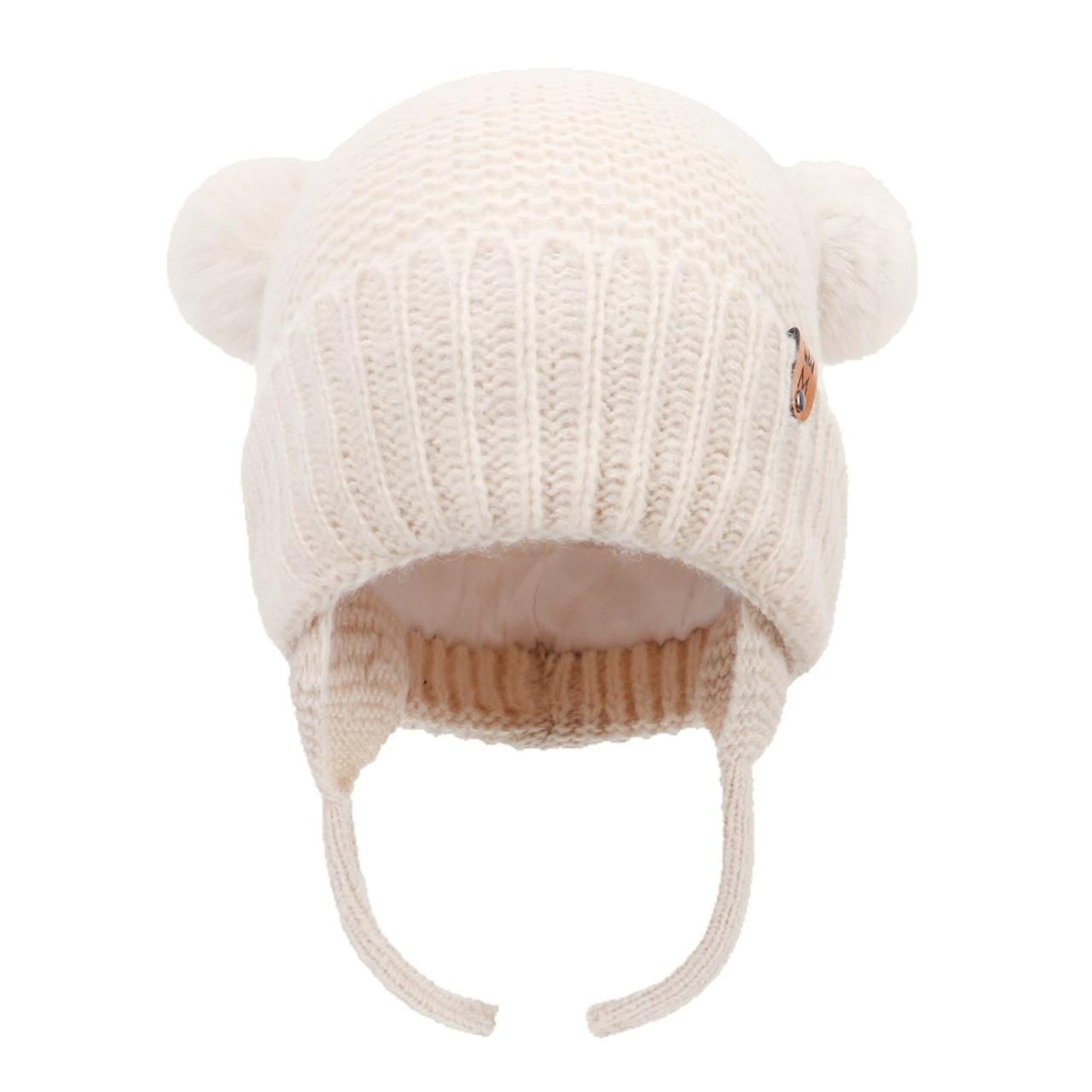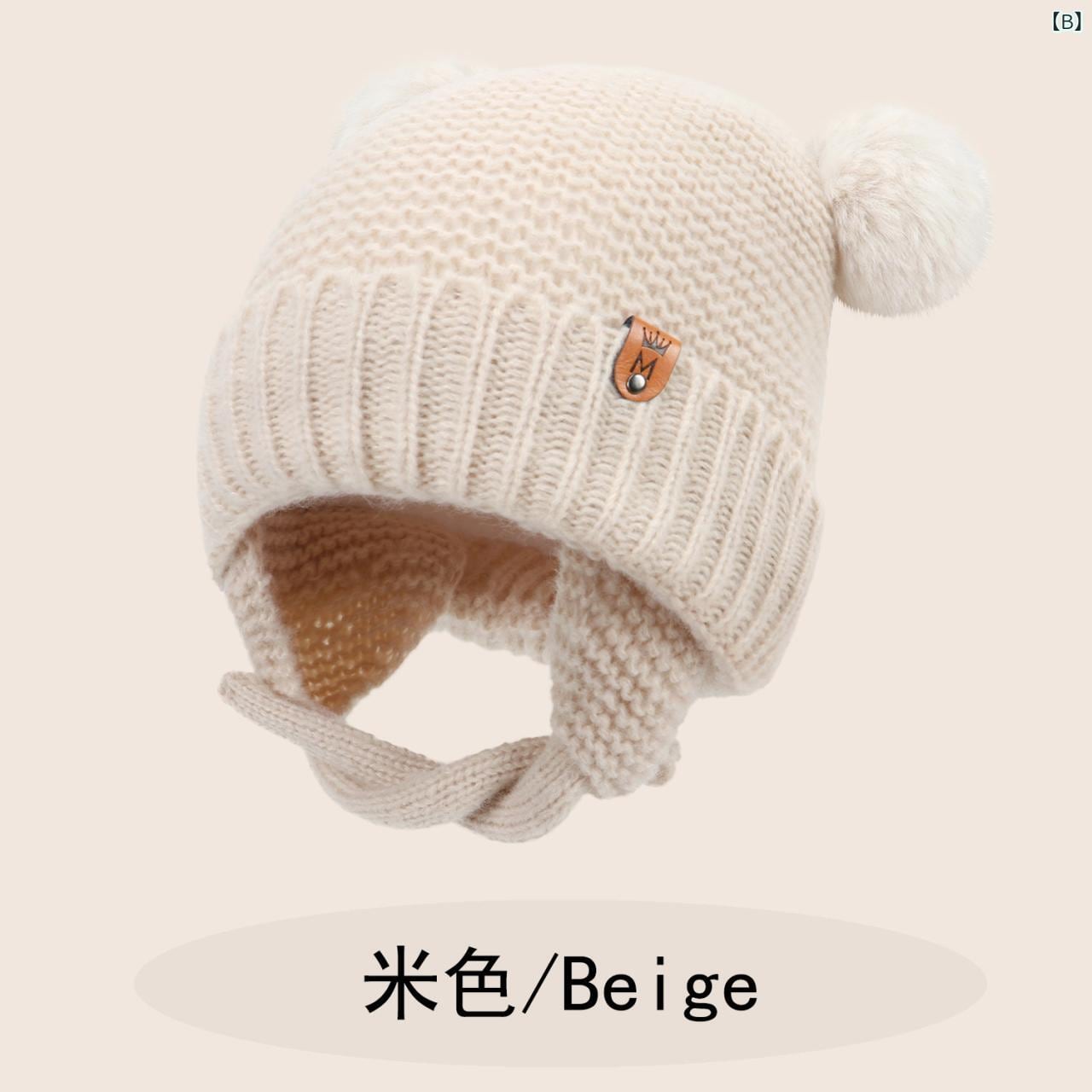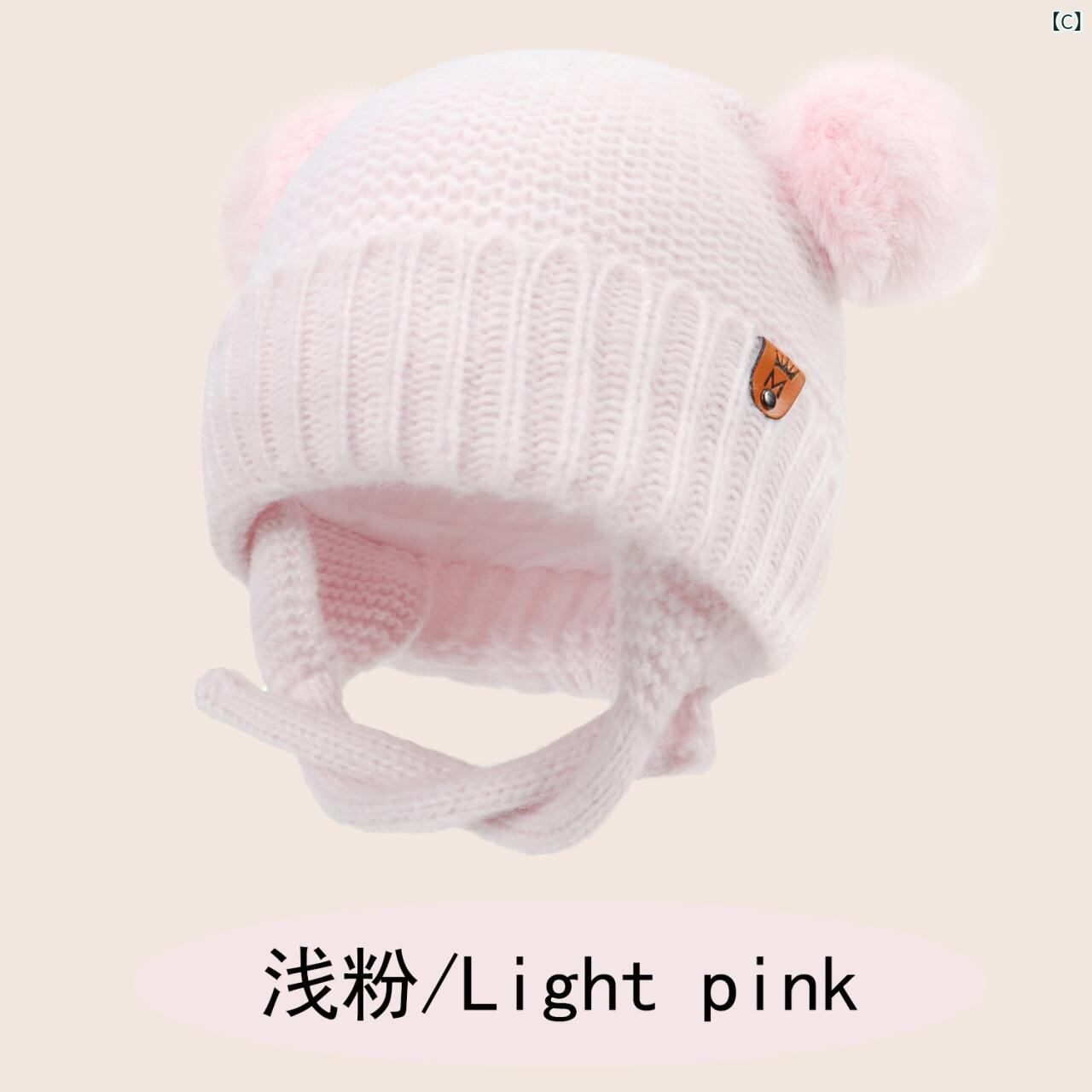 帽子 ベビー 秋冬 ニット帽 かわいい ダブルポンポン付き 防風 あご紐付き 純綿裏地 暖かい 伸縮性 通気性 乳幼児 新生児 子供用