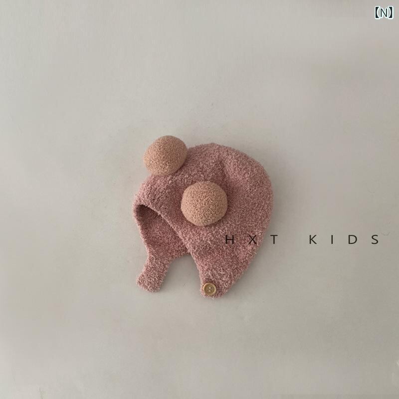 ニット帽 ベビー 赤ちゃん 用 秋冬 防風 防寒 耳当て付き 帽子 男の子 女の子 あたたかい かわいい 伸縮性 ベージュ グレー ピンク イエロー ブルー