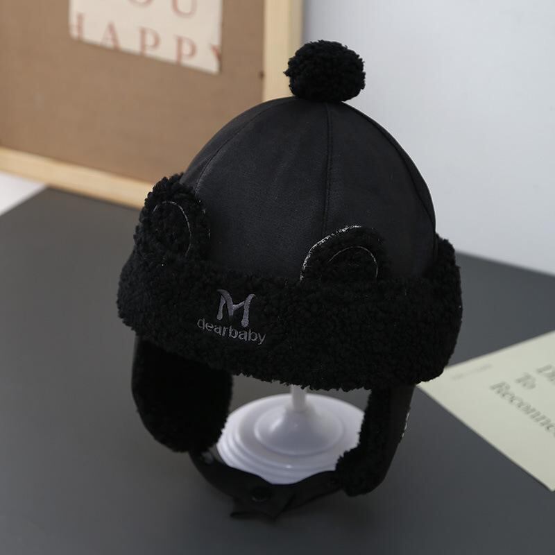 帽子 キッズ レトロ 耳当て付き ニット帽 子供用 防寒 厚手 かわいい ボア付き 冬 ベージュ ピンク ブラック グレー ブラウン 3歳 4歳 5歳 6歳 7歳 8歳 9歳 10歳
