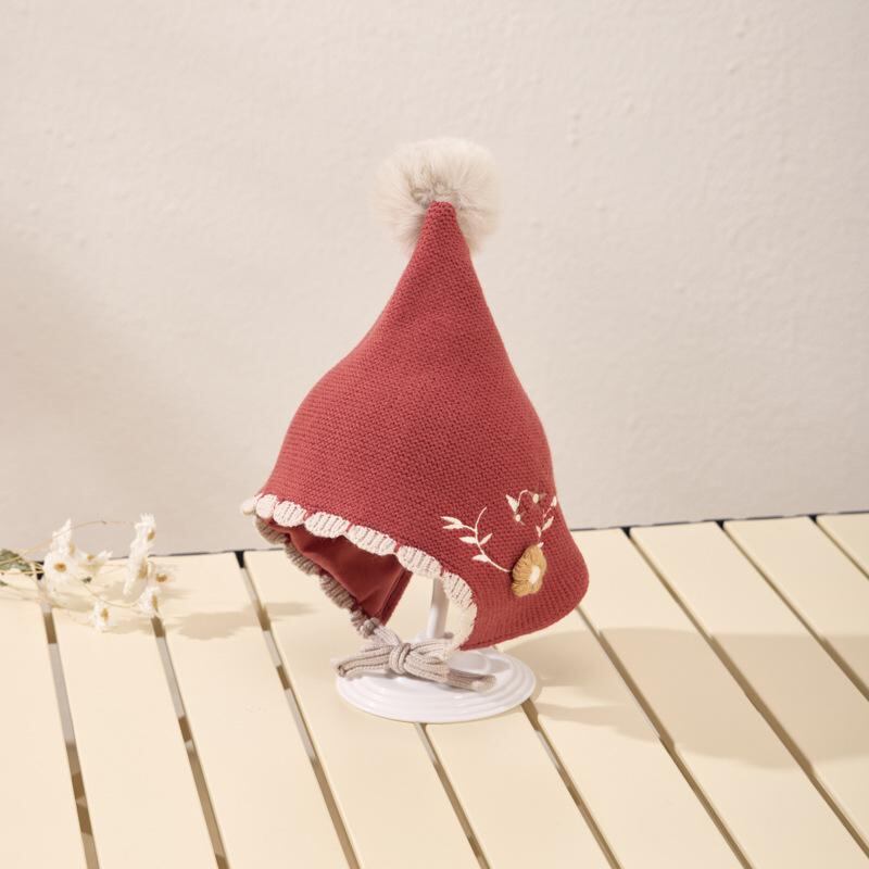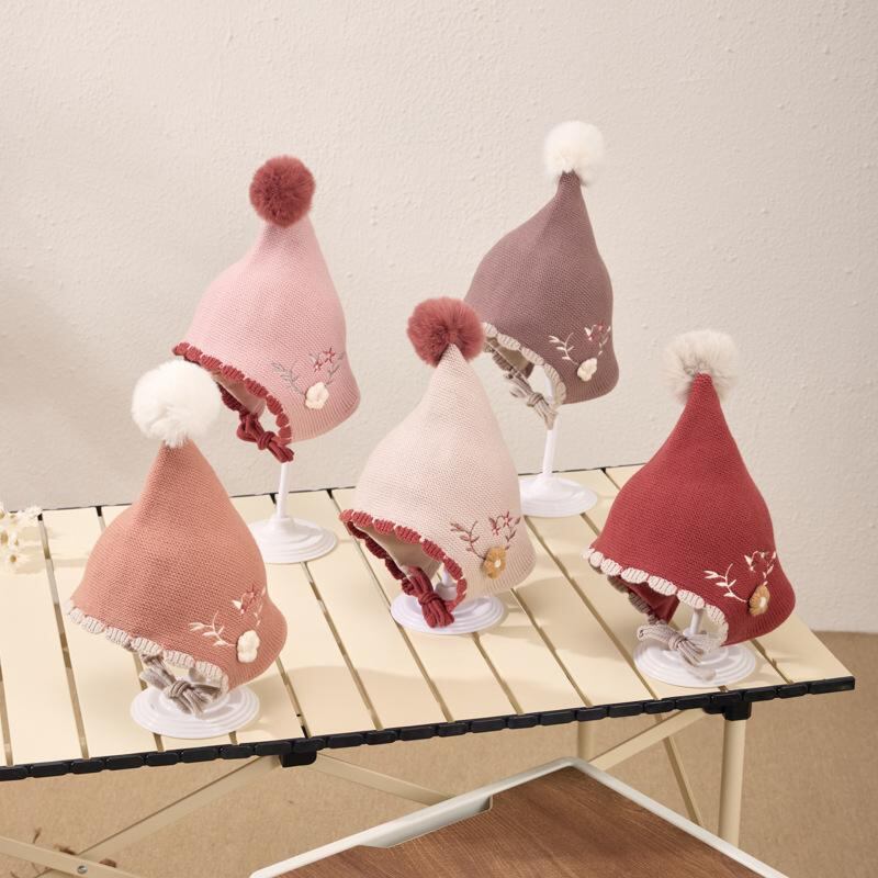 ニット帽 キッズ 冬用 防寒 暖かい 裏地付き かわいい 花柄 ベビー 帽子 ピンク系 アプリコット レンガ色 6ヶ月 12ヶ月 歳 児童
