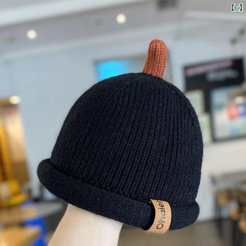 帽子 ベビー 赤ちゃん ニット帽 秋冬 防寒 暖かい 毛糸 帽子 シンプル かわいい 男の子 女の子 無地 伸縮性