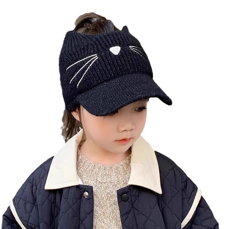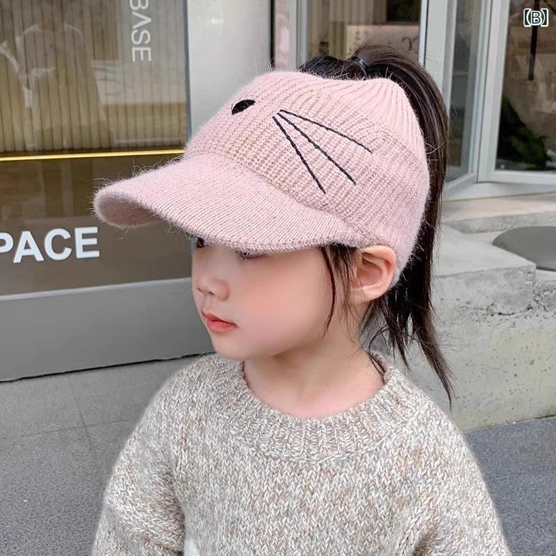 帽子 キッズ 秋冬 ニット帽 野球帽 耳当て付き ウール ケーブル編み ポニーテール 3歳 4歳 5歳 6歳 7歳 8歳 9歳 10歳 11歳 12歳 防寒 防風 日よけ ベージュ ホワイト ピンク ブラック