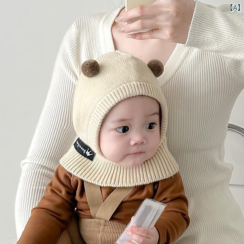 帽子 ベビー ニット帽子 秋冬 かわいい 暖かい 防風 幼児 赤ちゃん 一体型 スカーフ 毛糸