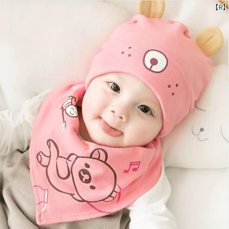 ベビー 帽子 新生児 赤ちゃん ニット帽 コットン 春秋冬 かわいい 保温 耳付き 動物柄