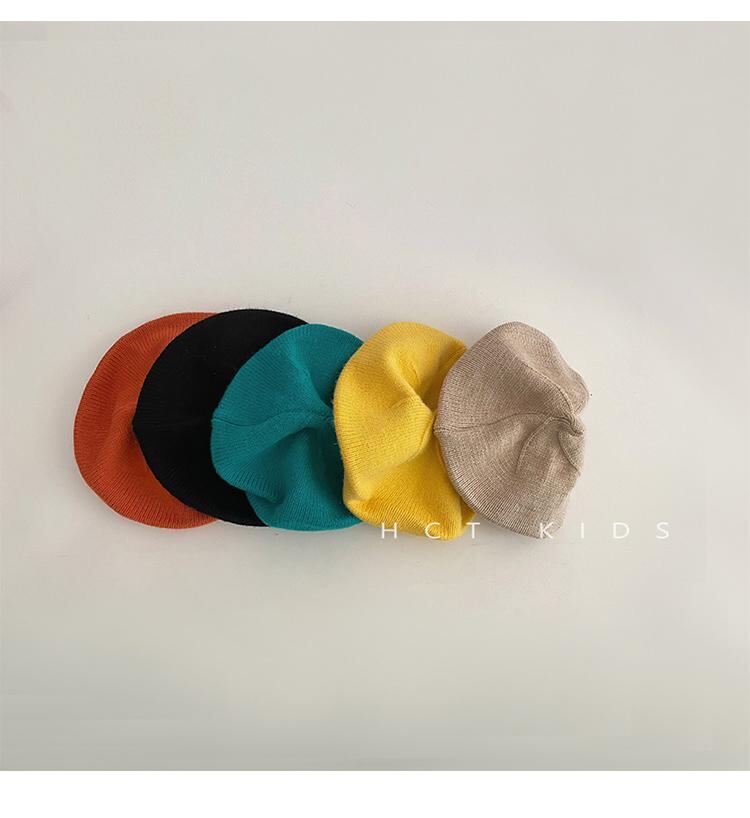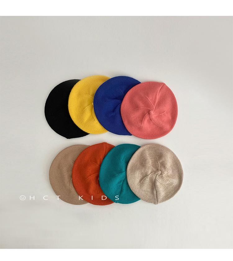 ベレー帽 キッズ 女の子 春秋 薄手 ニット キャンディカラー 帽子 ベビー 幼児 伸縮性 無地 かわいい 保温 イエロー ブルー