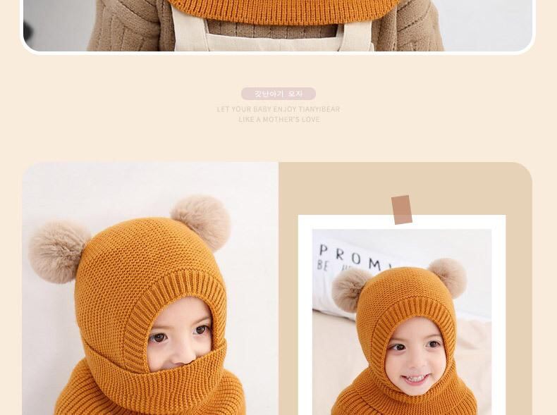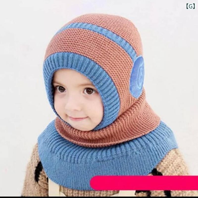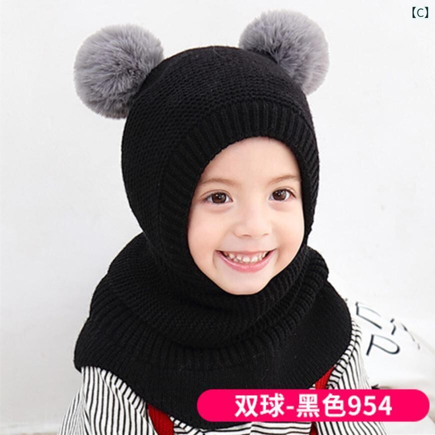 帽子 キッズ 秋冬 防寒 ニット帽 耳当て 一体型 マフラー 子供 男の子 女の子 2歳 3歳 4歳 5歳 6歳 かわいい あったか イエロー ブルー ブラック ピンク ワインレッド 猫耳