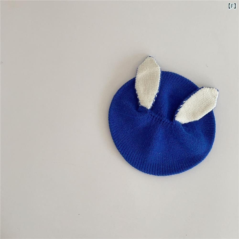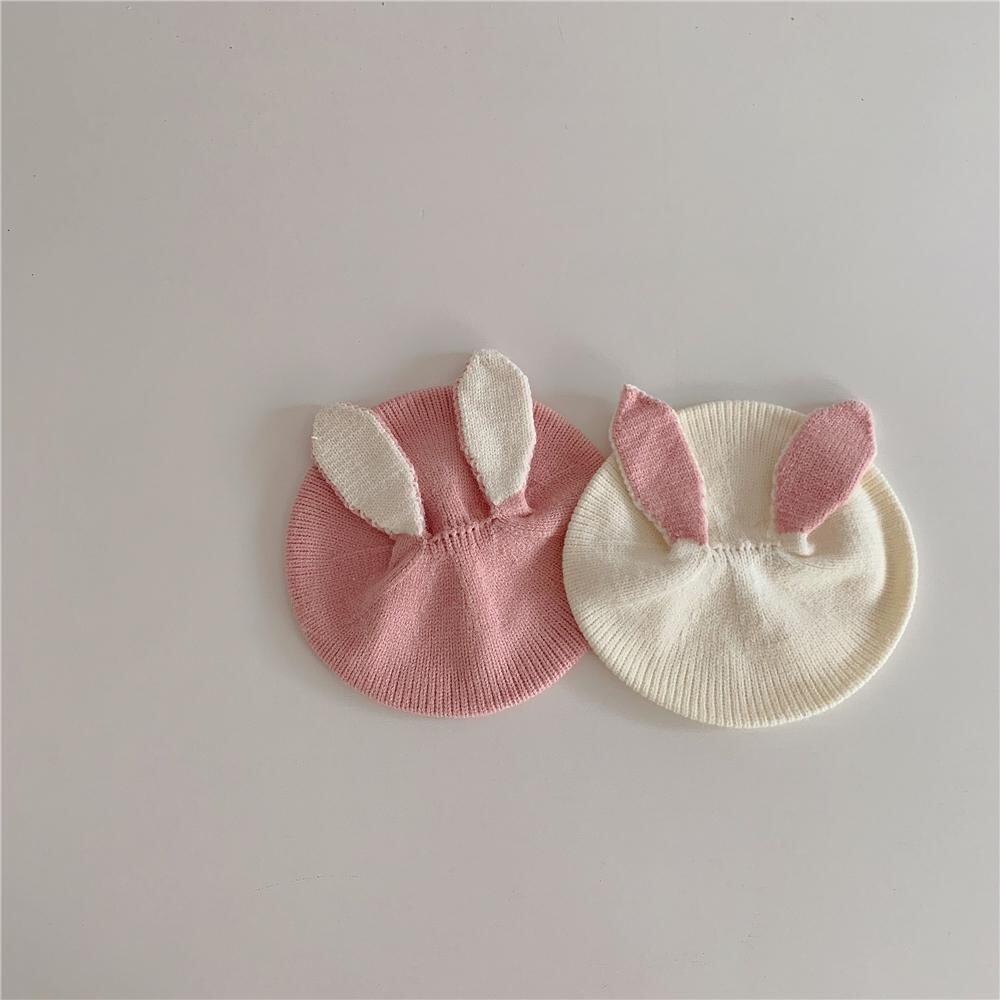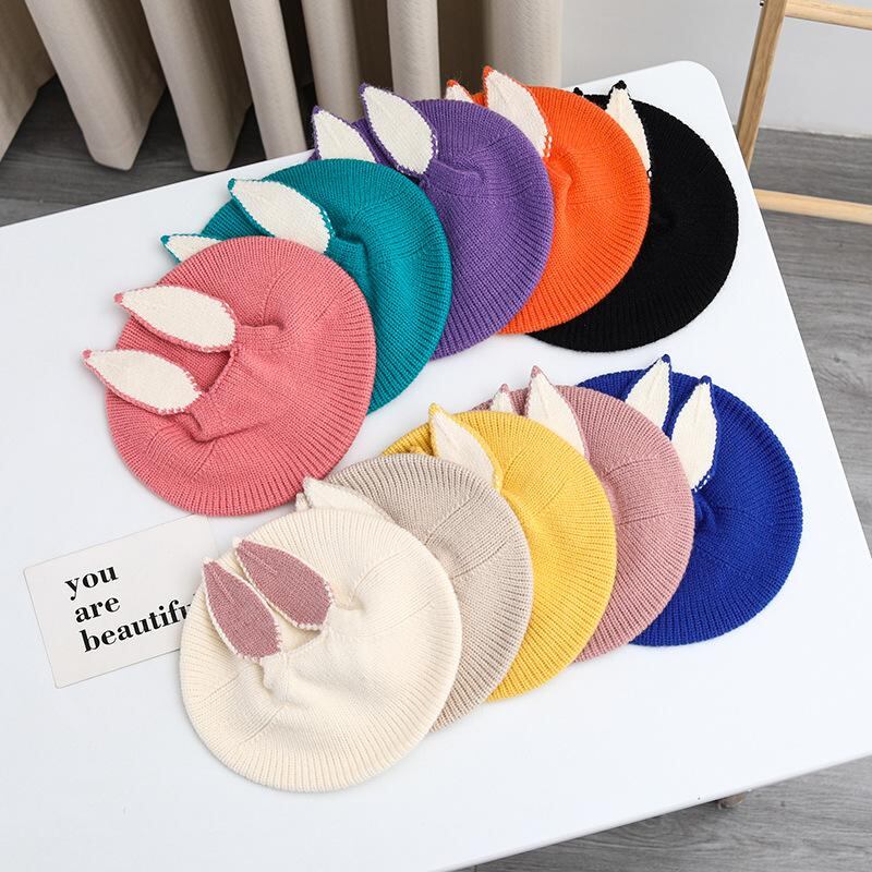 子供 帽子 ニット帽 ベビー かわいい 秋冬 暖かい ウサギ耳付き ベレー帽 46-50cm 春秋 1歳 2歳 ピンク系 ブラック アイボリー