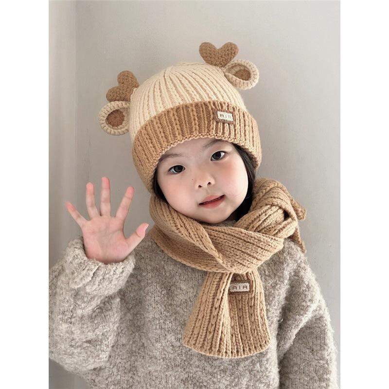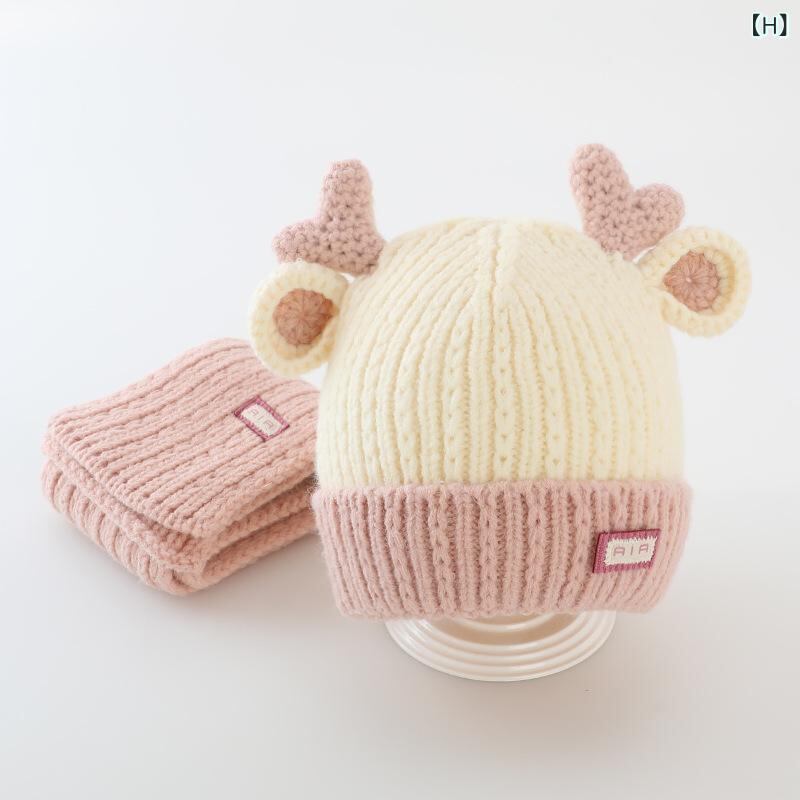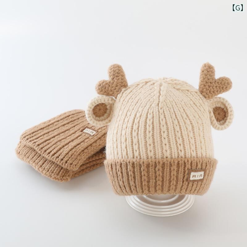 帽子 キッズ ベビー 防寒 ニット帽 マフラー セット 子供 女の子 男の子 鹿の角付き 秋冬 春秋 綿 ポリエステル 0歳 1歳 2歳 3歳 4歳 5歳 6歳 7歳 8歳 かわいい 漁夫帽