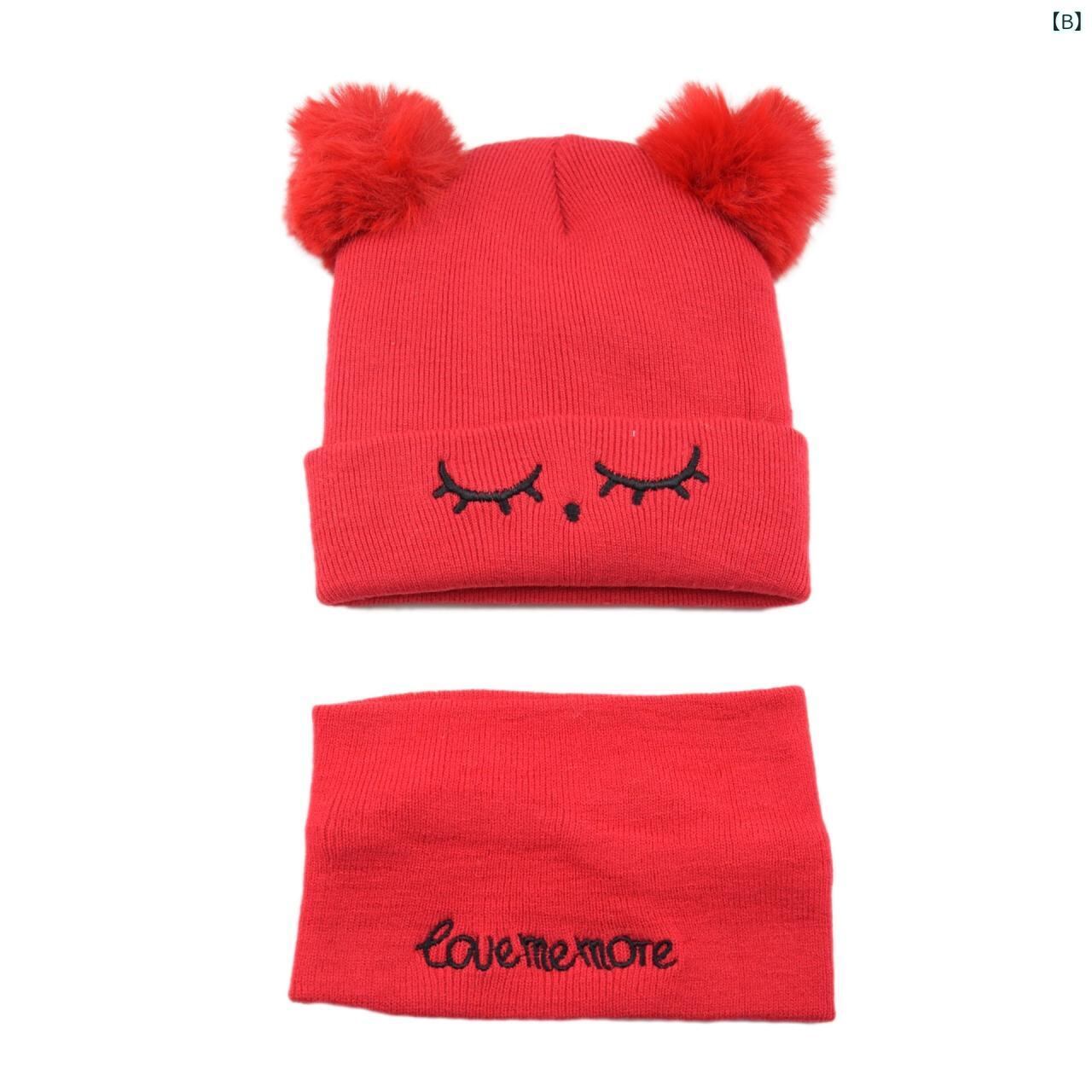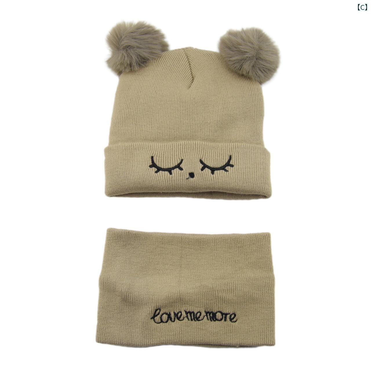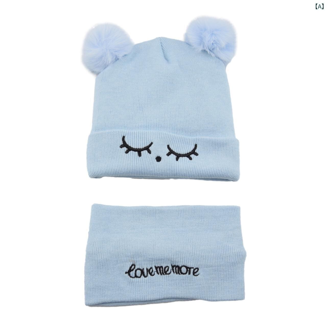帽子 ベビー 秋冬 ニット帽子 赤ちゃん 帽子 カートゥーン 刺繍 防寒 襟巻き 子供用 毛糸帽子 ビーニー 1歳 2歳 男の子 女の子 ブルー レッド ベージュ イエロー グレー ピンク系 かわいい