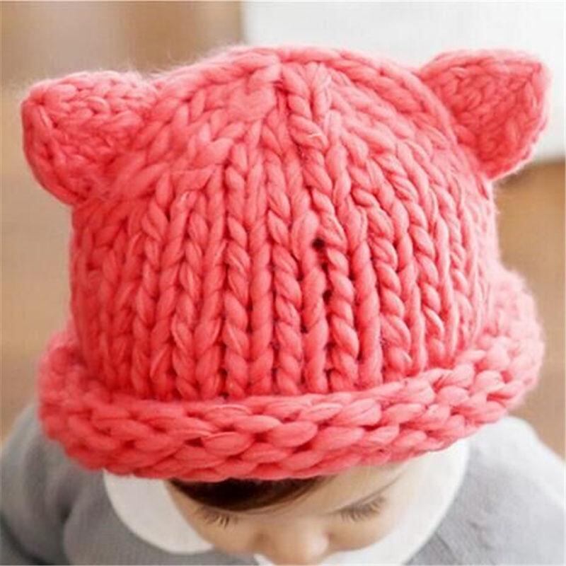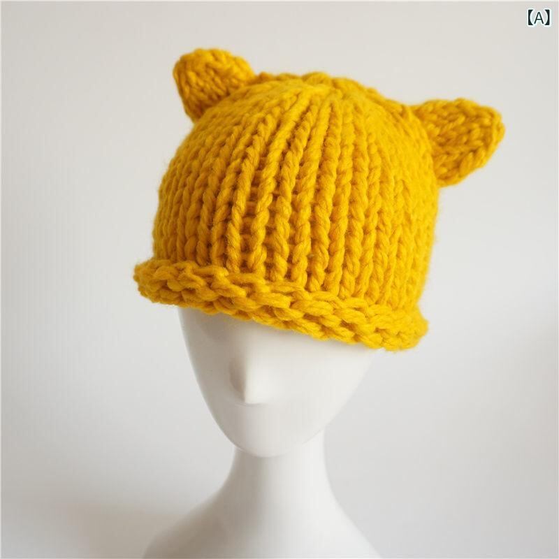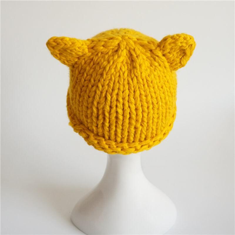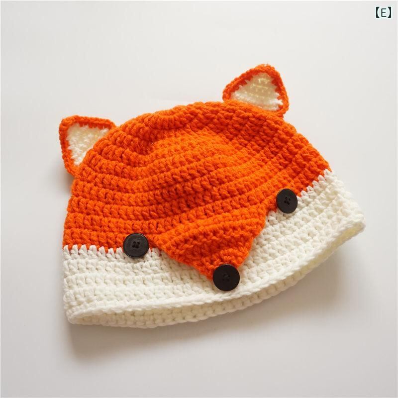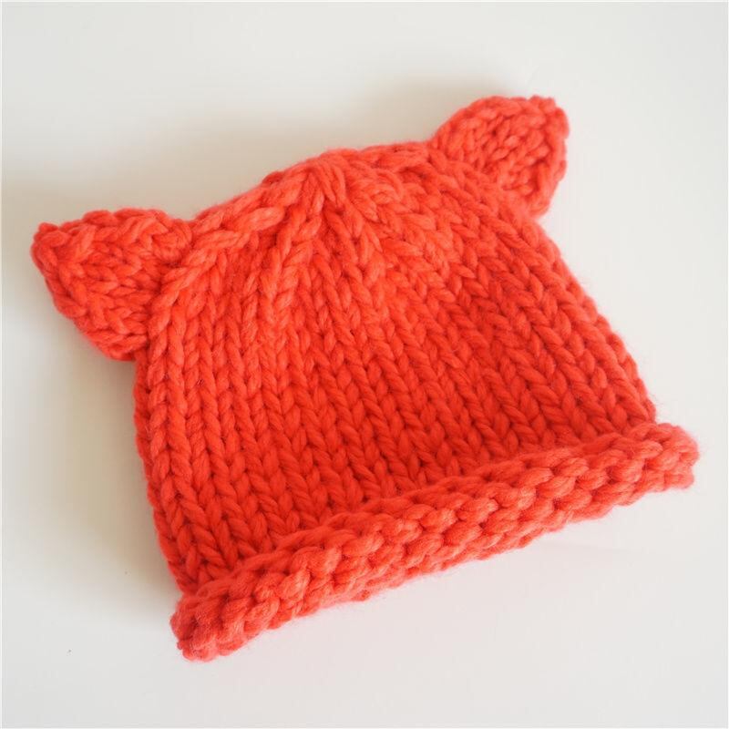 帽子 子供用 ニット帽 秋冬 防寒 ベビー 赤ちゃん かわいい 小さな耳付き 男の子 女の子 厚手 無地 イエロー レッド ベージュ ブラック 小狐 狸 オレンジ グレー 4~15ヶ月 頭囲45~50cm 防風 日よけ