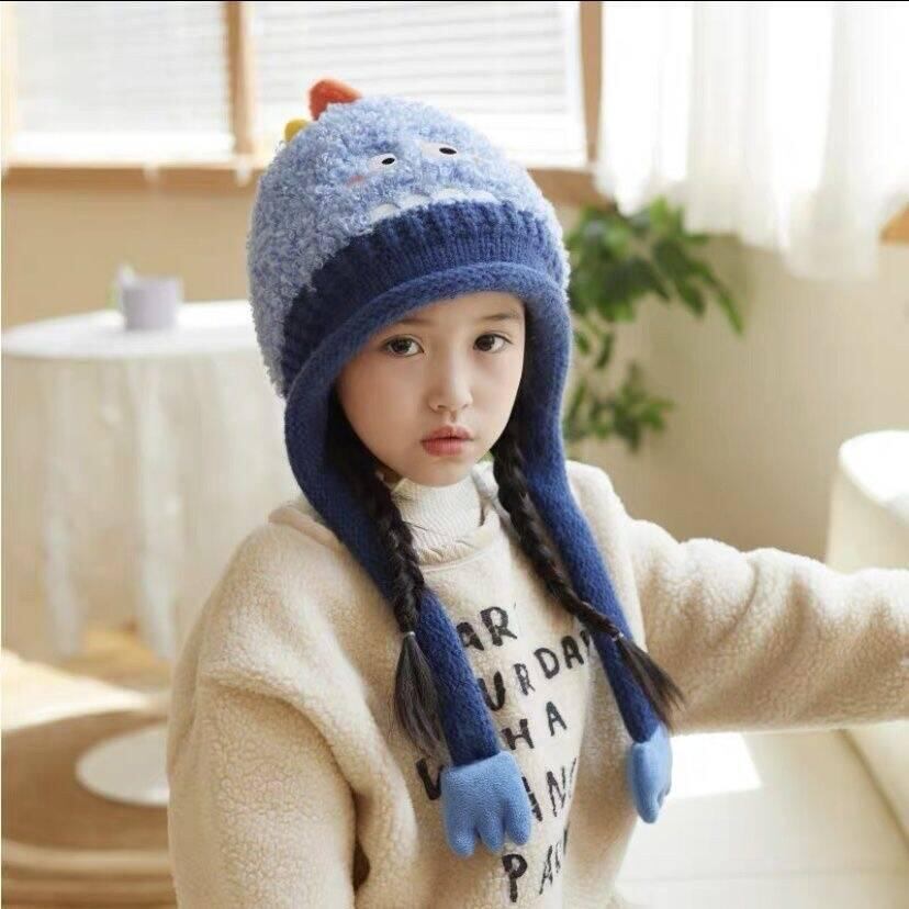帽子 キッズ 女の子 ニット帽 マフラー 一体型 防寒 暖かい かわいい 男の子 子供 帽子 無地 秋冬