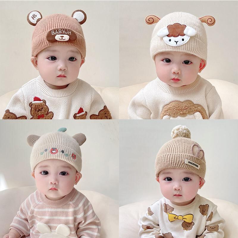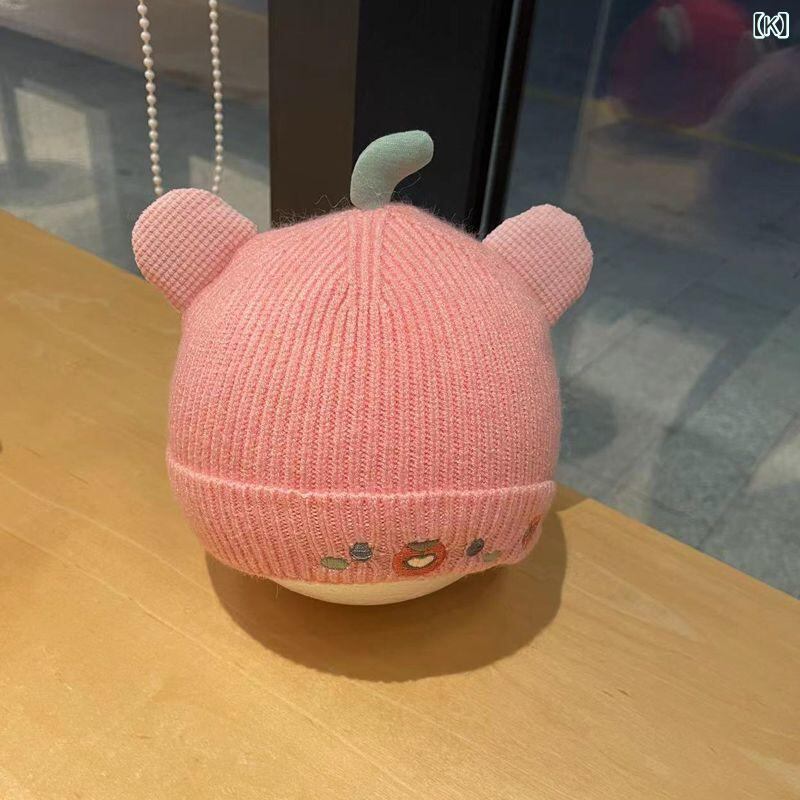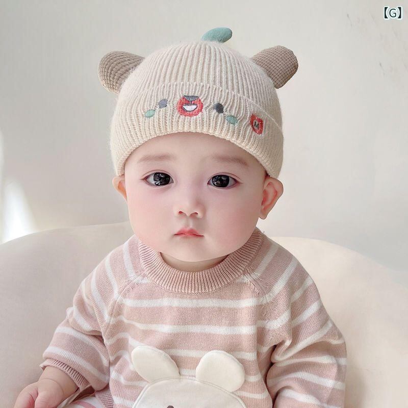 ベビー帽子 新生児 胎内帽子 秋冬 ニット帽 厚手 保温 男の子 女の子 赤ちゃん ウール混紡 小さめ 耳付き かわいい ベージュ カーキ ピンク グリーン