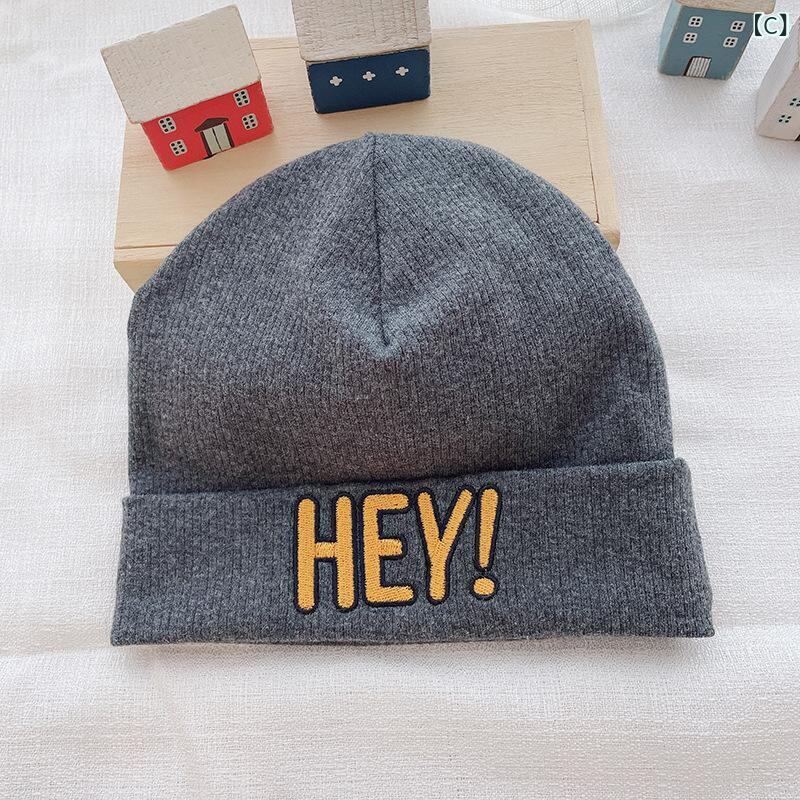 ニット帽 キッズ ベビー コットン 帽子 刺繍ロゴ 子供 韓版 秋冬 防寒 保温 1歳 2歳 3歳 4歳 5歳 6歳 ブラック レッド グレー ピンク系 キャラメル