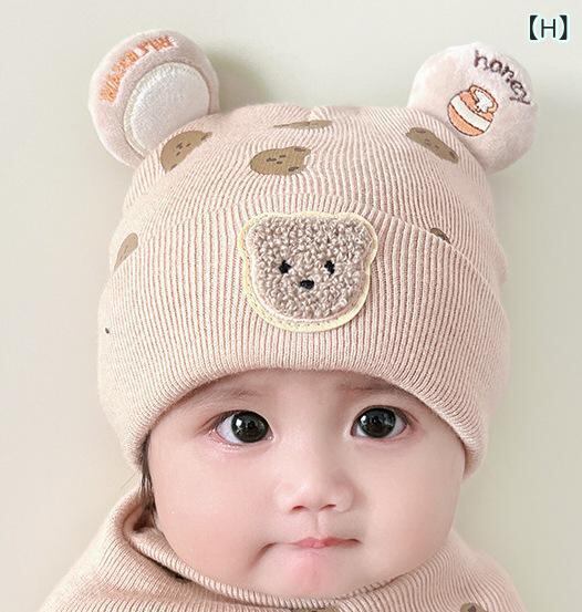 ベビー 帽子 秋冬 ニット帽 赤ちゃん 幼児 コットン かわいい 防寒 保温 睡眠 うさぎ クマ耳付き