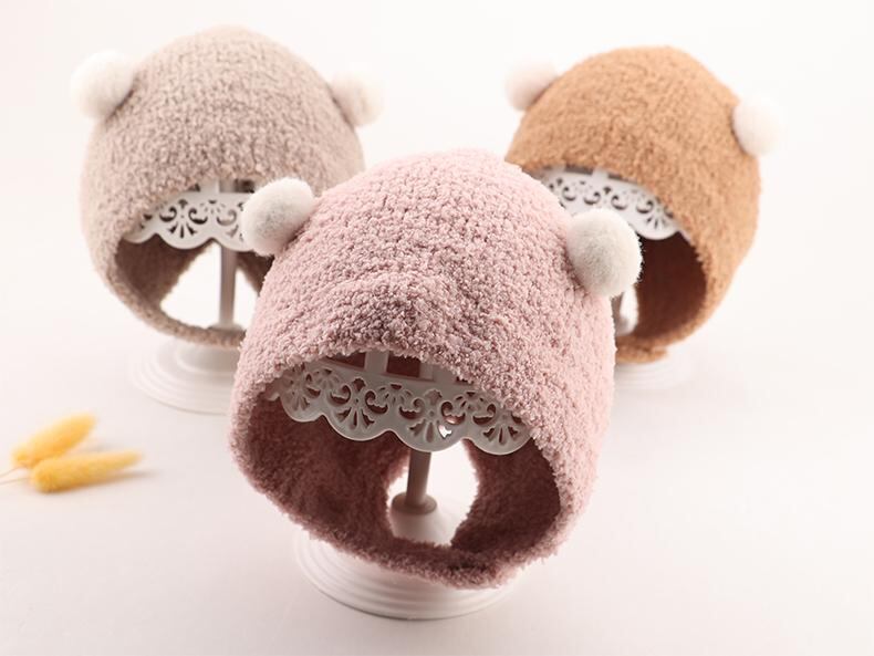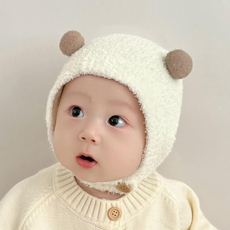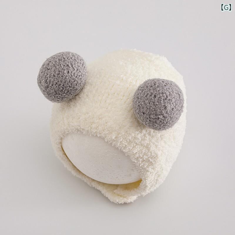 帽子 ベビー 秋冬 新生児 赤ちゃん ニット帽 耳当て付き かわいい 保温 防風 男の子 女の子 コットン混紡 0歳 1歳 2歳 白 ピンク系 黄色 ベージュ あたたかい