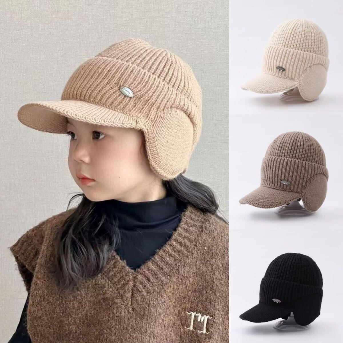 帽子 キッズ 秋冬 耳当て付き ニット帽 男の子 女の子 防寒 防風 3歳 4歳 5歳 6歳 7歳 8歳 9歳 10歳 毛糸 伸縮性 ベージュ ブラック ブラウン カーキ