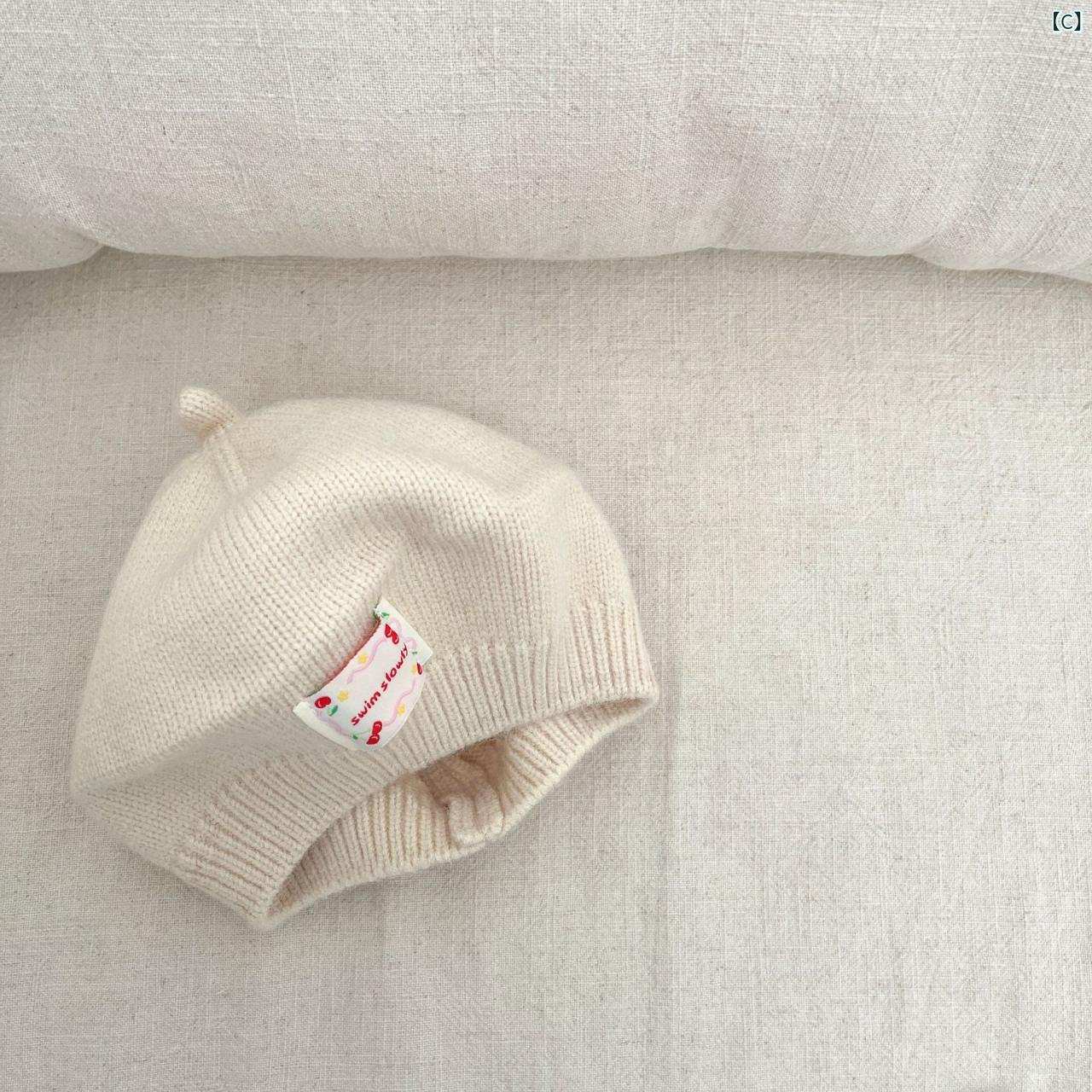 ベビー 帽子 春 ベレー帽 男女 兼用 幼児 ニット帽 新生児 あったか ニット 灰色 黒 ベージュ パステルカラー 0歳 1歳 2歳 防寒