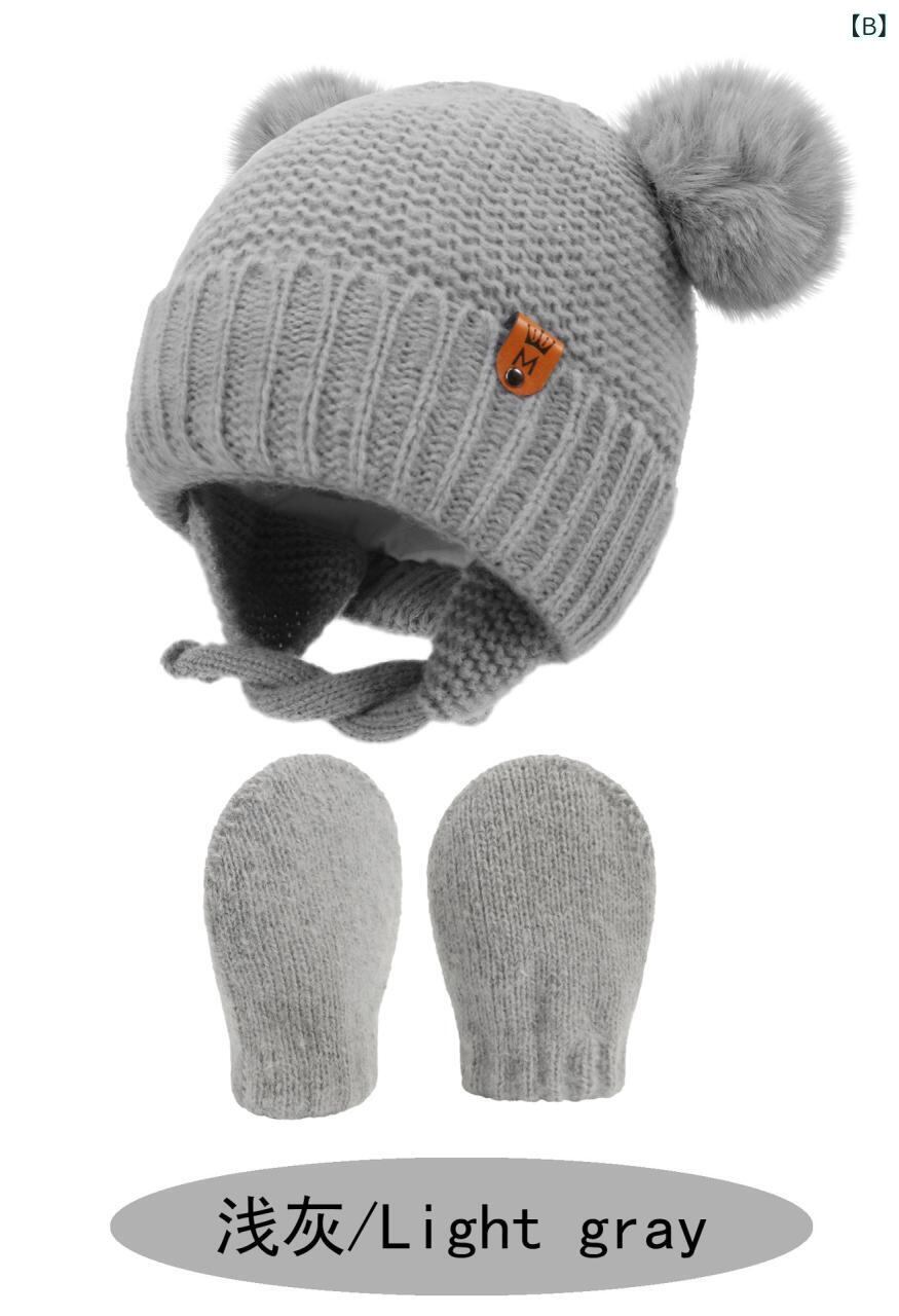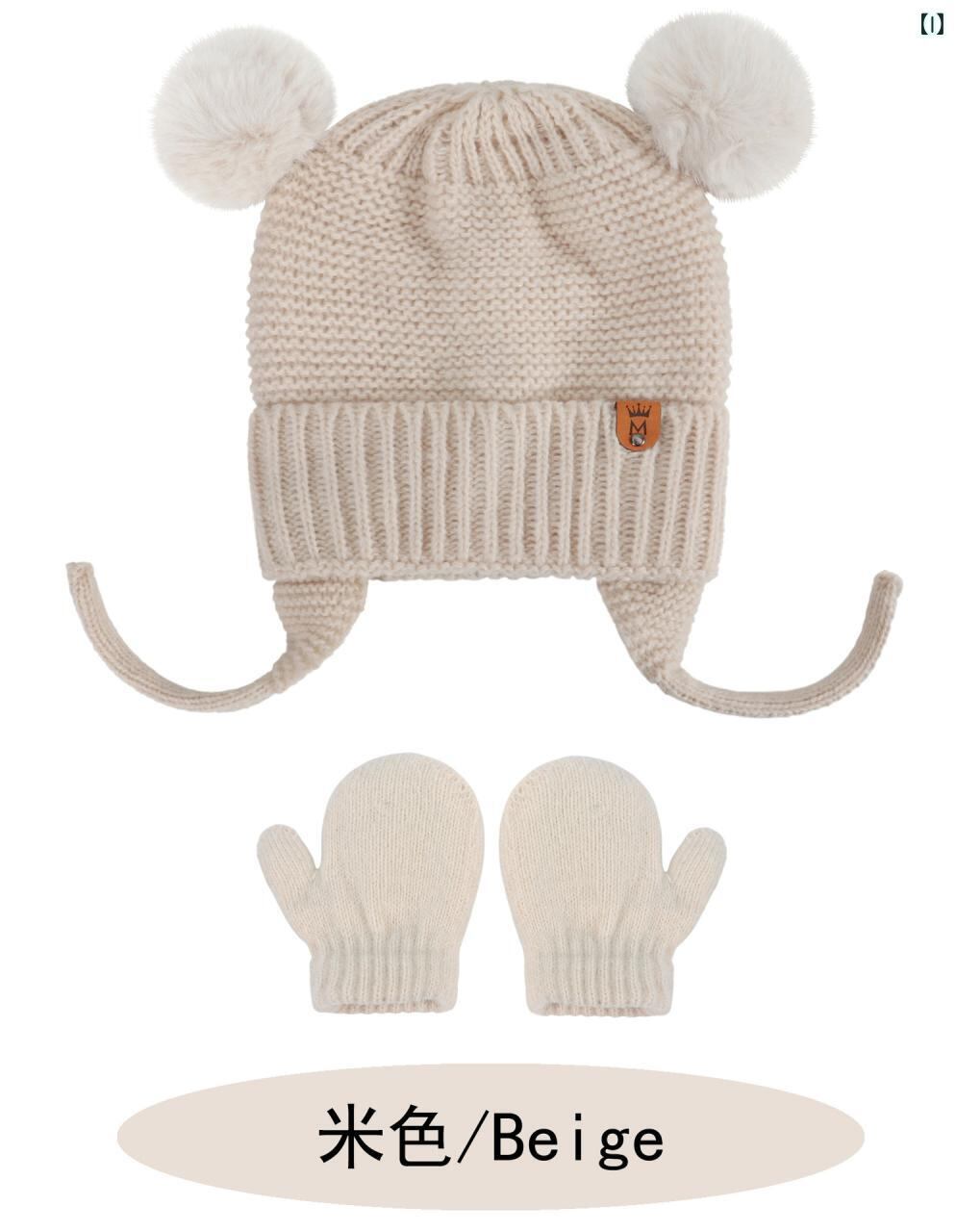 帽子 ベビー 秋冬 ニット帽 コットン 裏地 防風 あご紐付き かわいい 二つ玉 赤ちゃん 手袋 セット 0歳 1歳 2歳 防寒 保温 伸縮性 柔らかい