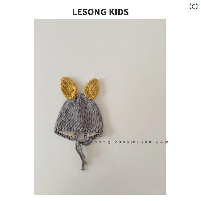 帽子 ベビー 秋冬 ニット帽 耳当て付き 撞色 うさぎ耳 かわいい リボン付き 子供 毛糸 帽子 男の子 女の子 冬 防寒 あったか 伸縮性 保温 コットン