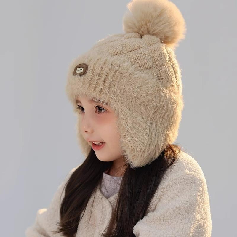 帽子 キッズ 女の子 冬用 防寒 ニット帽 裏起毛 暖か 耳当て付き 男の子 ベビー 帽子 厚手 ポンポン付き かわいい 秋冬