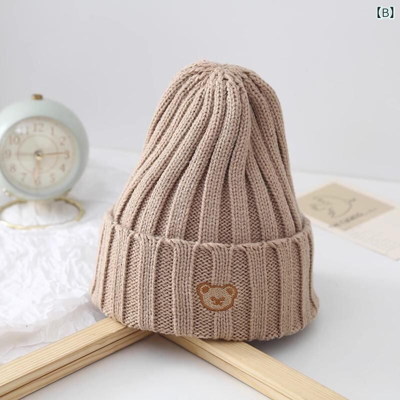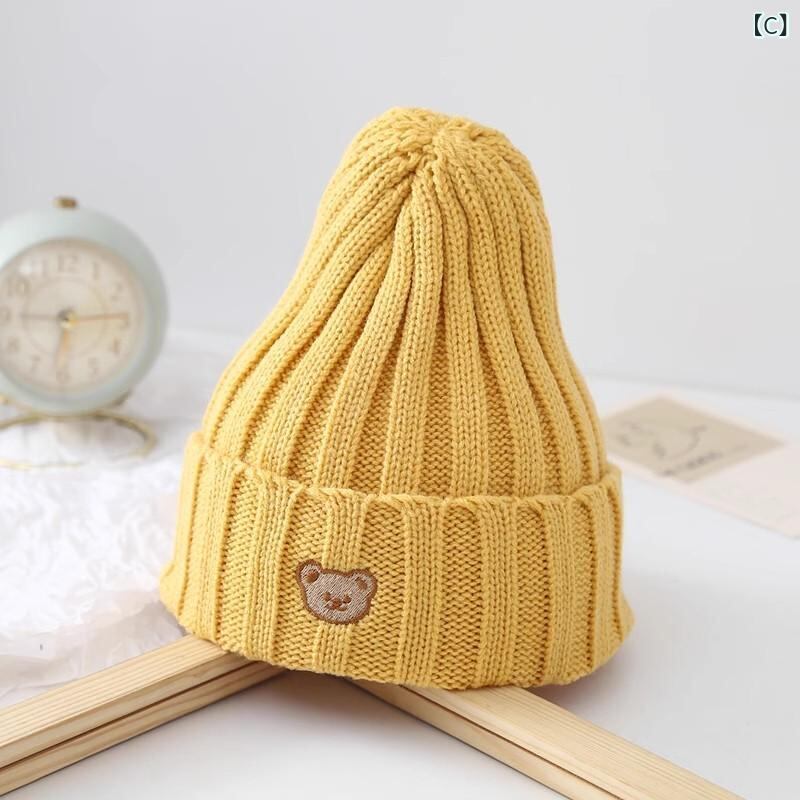 帽子 キッズ ベビー ニット帽 秋冬 防寒 暖かい やわらか かわいい クマ耳付き 毛糸 チクチクしない 保温 通気性 ベージュ ピンク パープル